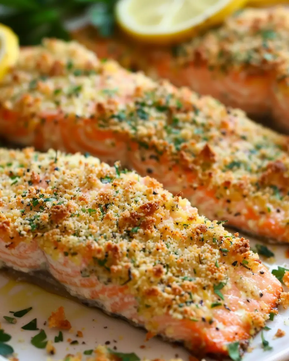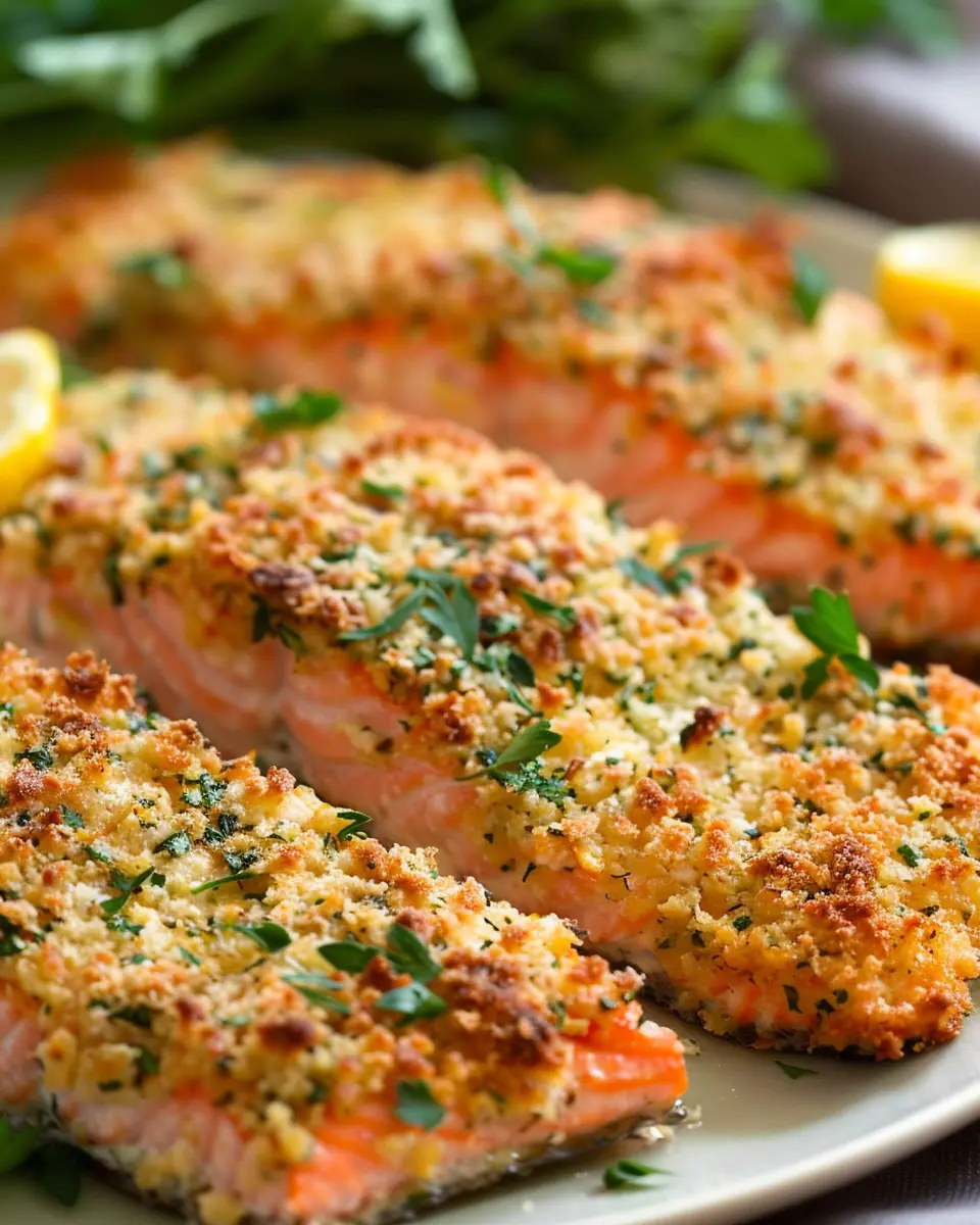 Baked Parmesan Crusted Salmon is a delightful dish that combines the rich flavor of salmon with a crispy, cheesy topping, ideal for a satisfying dinner.