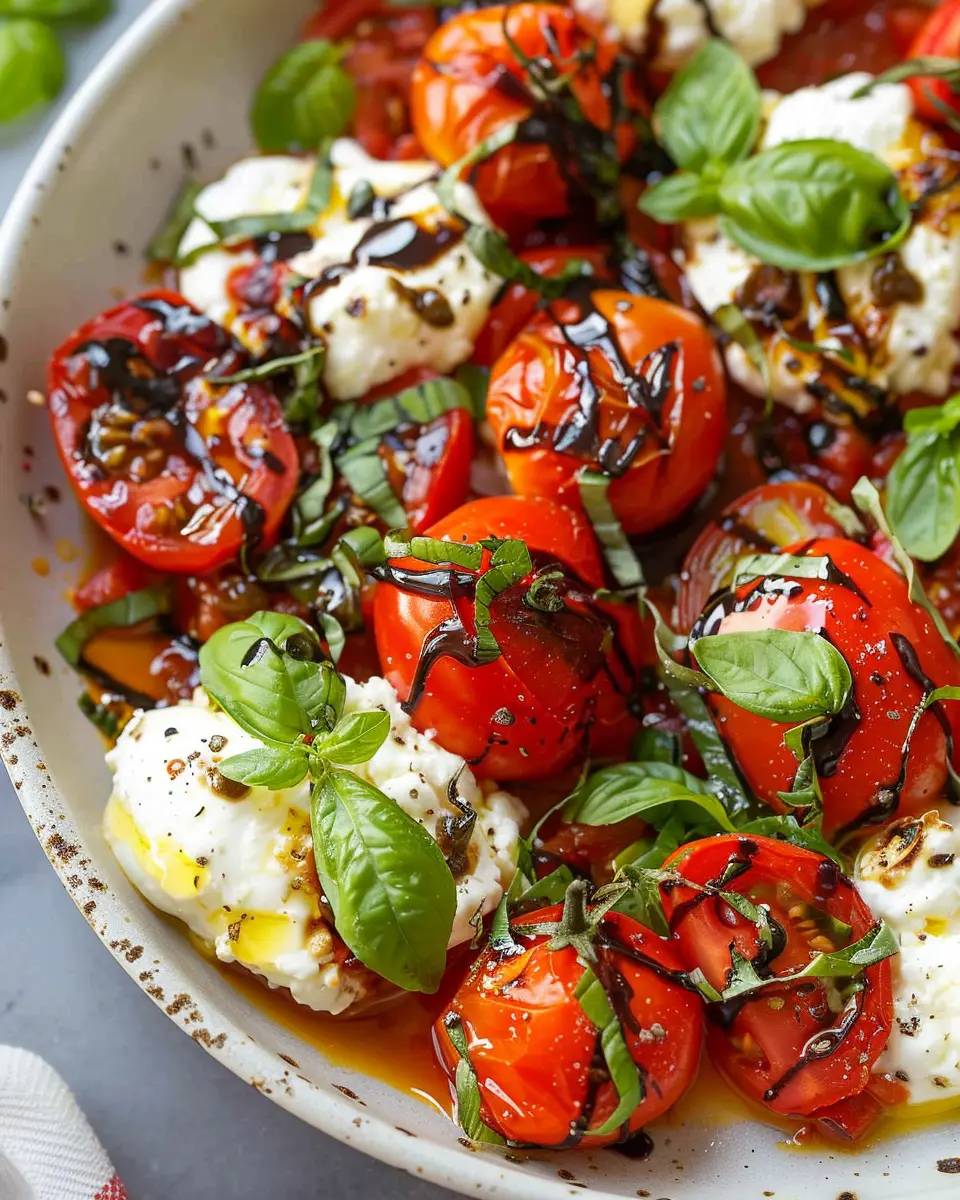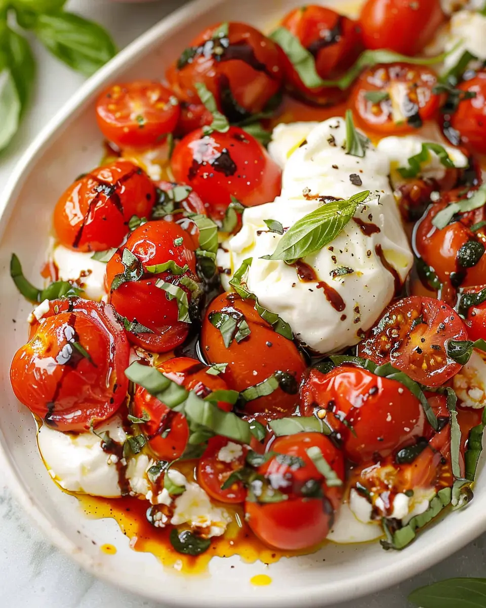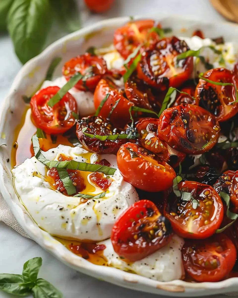 PrintBurrata with Roasted Tomatoes: A Juicy Twist on Fresh Flavor