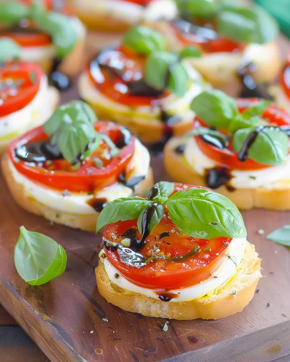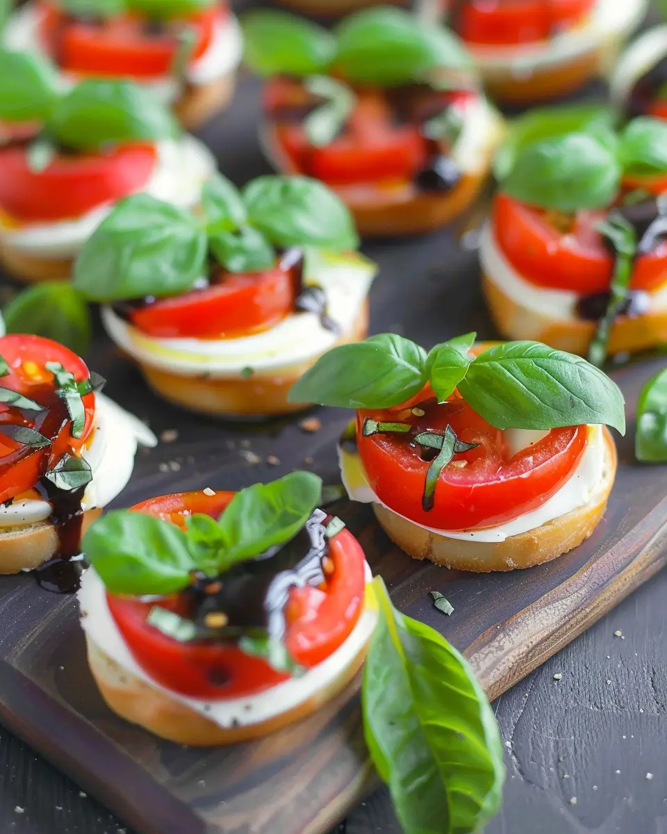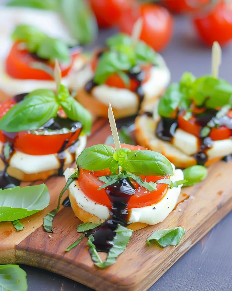 - Drizzle a little balsamic glaze over each assembled bite for that perfect tang.
