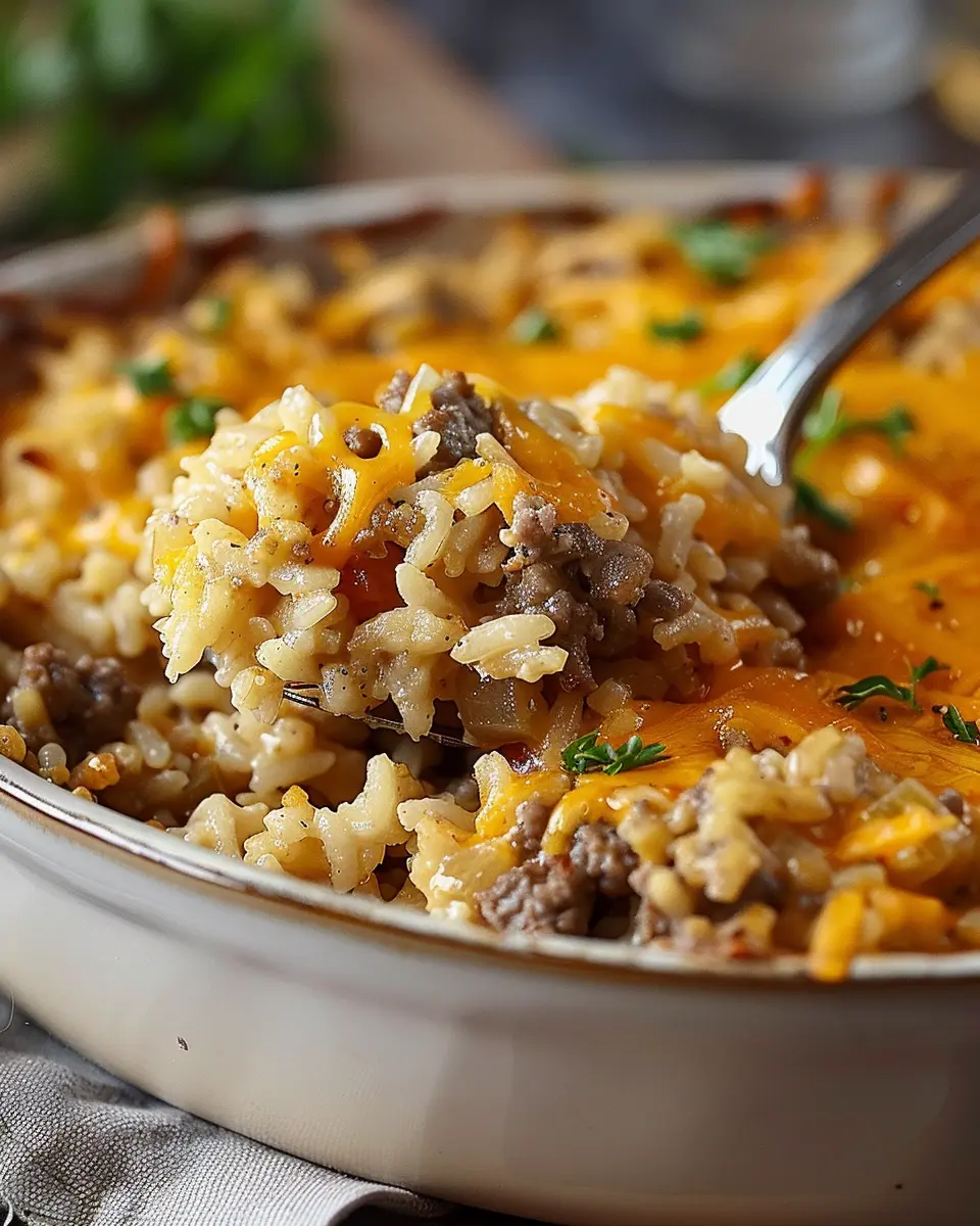 In wrapping up, the cheesy hamburger rice casserole is more than just a hearty meal; it’s a warm hug on a plate, perfect for busy weeknights or when you’re entertaining friends. This dish effortlessly combines comforting flavors with easy preparation, making it a go-to favorite in your kitchen arsenal.