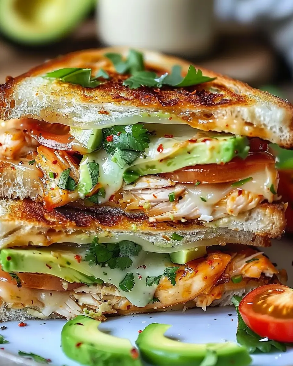 It’s like magic when you cut into that sandwich, revealing the gooey cheese, creamy avocado, and succulent chicken!