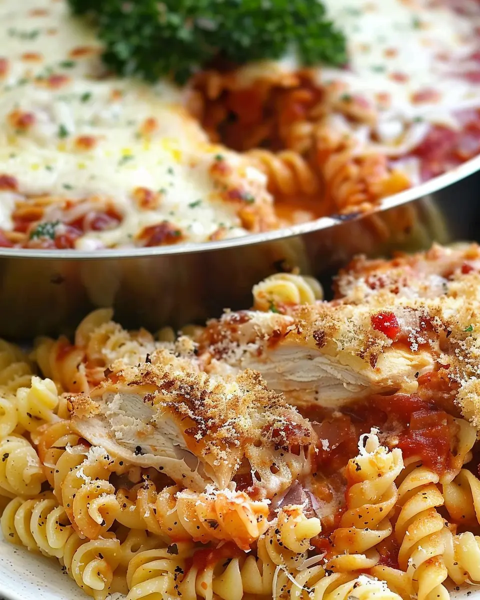 Wrapping up our culinary journey with Chicken Parmesan & Pasta Casserole, it’s time to embrace this comforting dish in your kitchen. This recipe combines the best of Italian flavors with the ease of a casserole, making it perfect for busy weeknights or cozy gatherings with friends. The crispy chicken, rich marinara, and melted cheese create a satisfying meal that’s sure to impress.