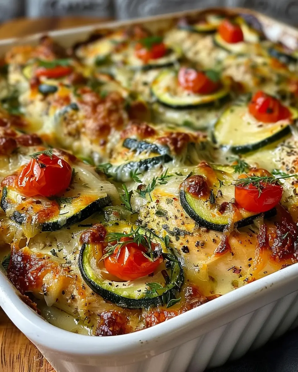 PrintChicken Zucchini Bake: Easy and Juicy Comfort Food Delight