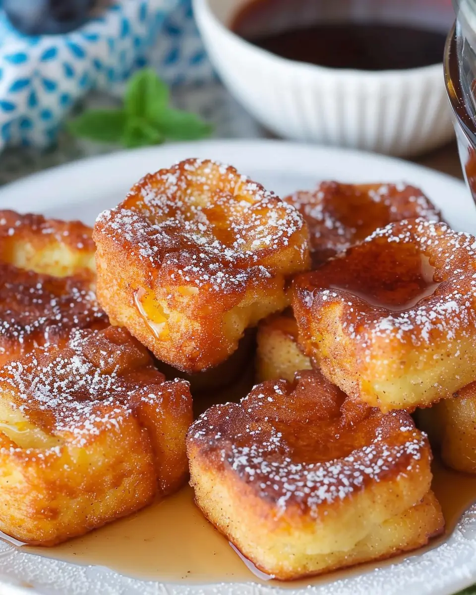 The magic happens when the sugar melts slightly against the warm bites, forming a delectable crust. Serve these little delights warm, paired with your favorite syrup or fresh fruits. You can even sprinkle some chopped nuts or chocolate chips for an extra treat!