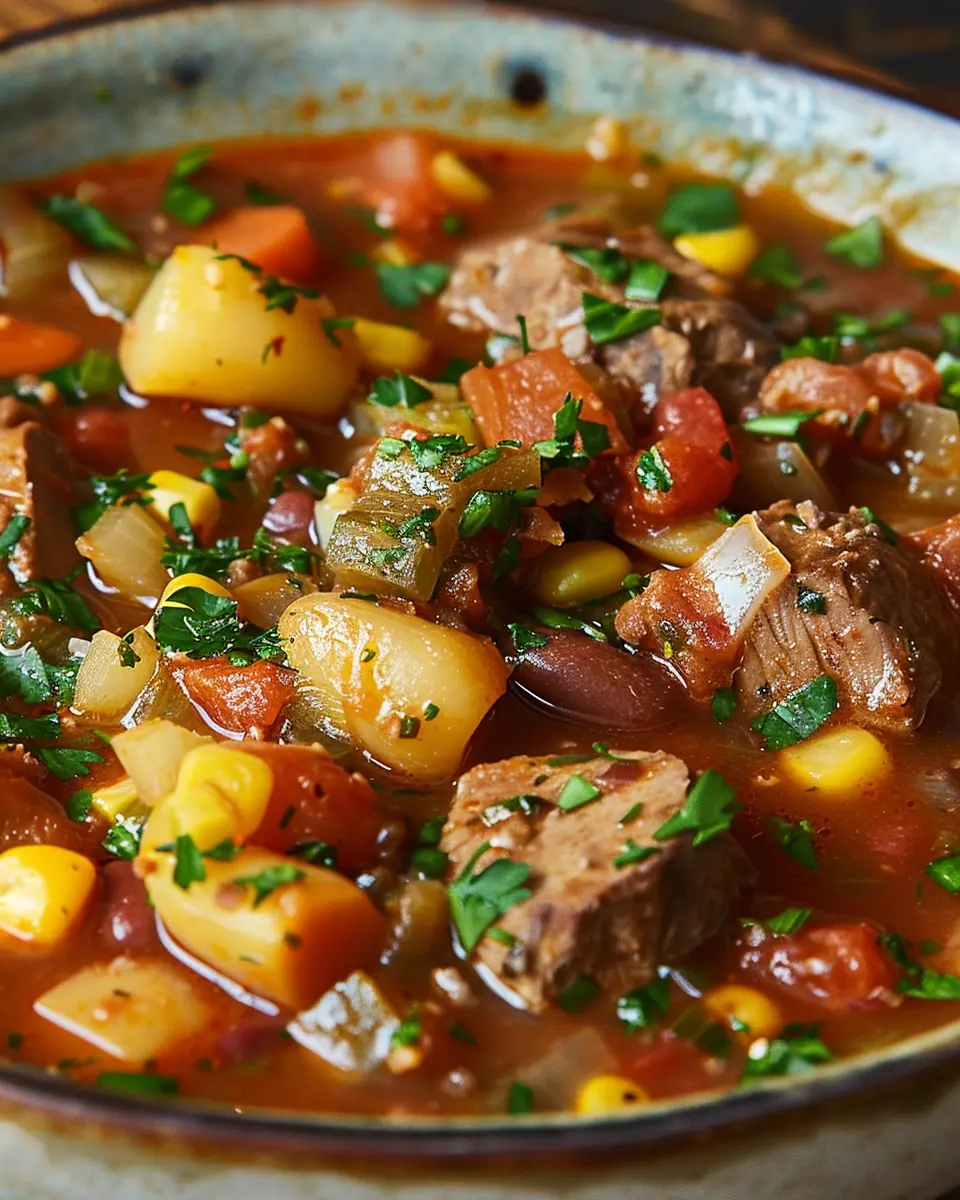 PrintCowboy Stew: Hearty Comfort with Turkey Bacon and Chicken Ham