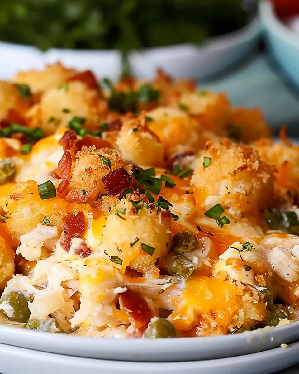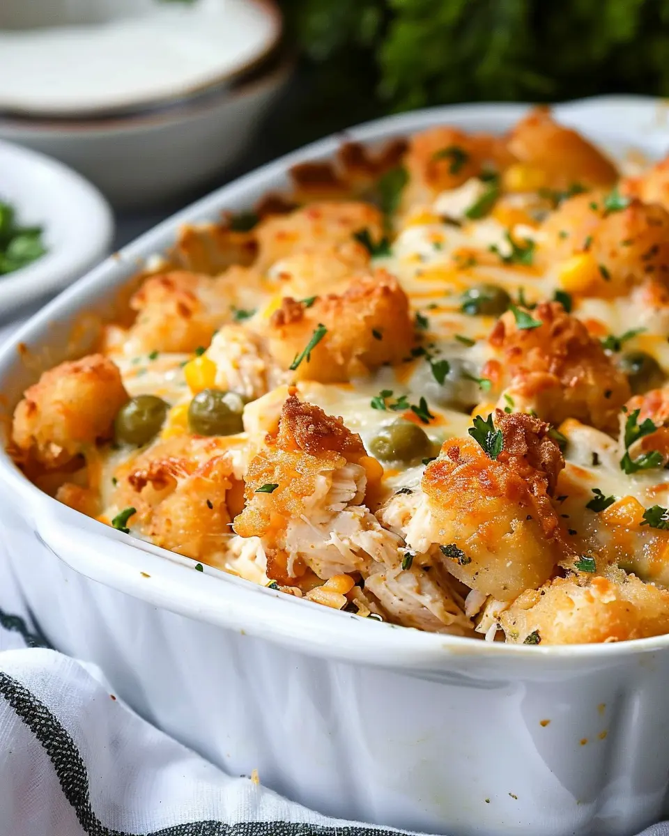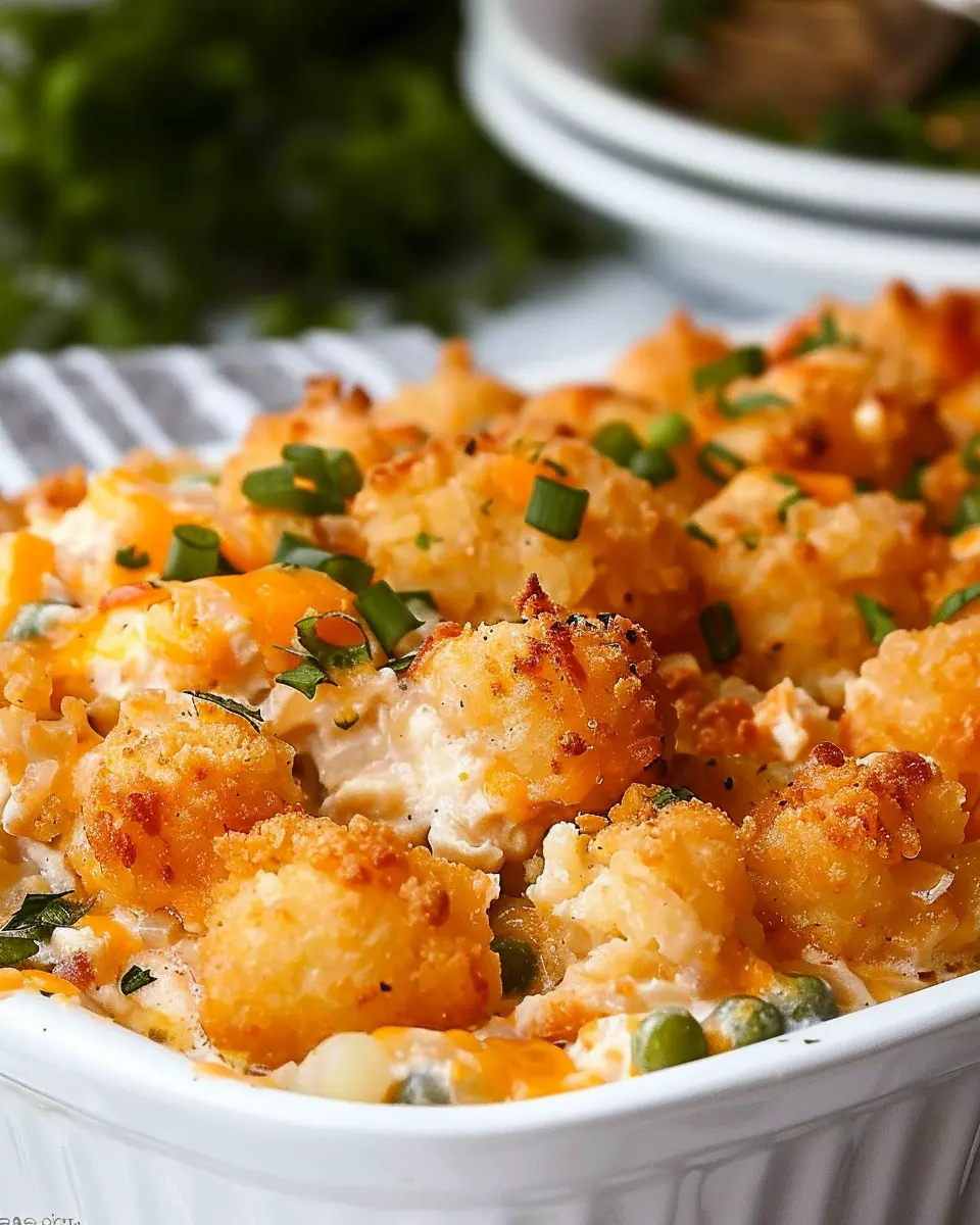 A delicious twist on classic comfort food, combining tater tots and chicken for a satisfying meal.