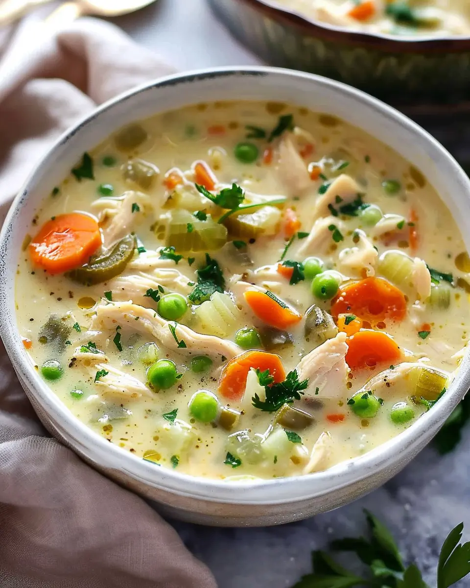 PrintCreamy Chicken Veggie Soup: A Deliciously Comforting Dish