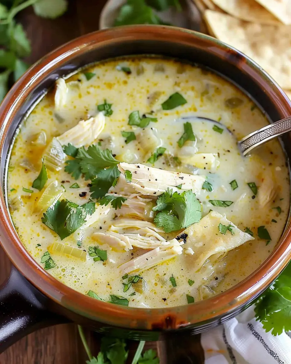A warm and comforting soup that combines the flavors of creamy green enchiladas with tender chicken.