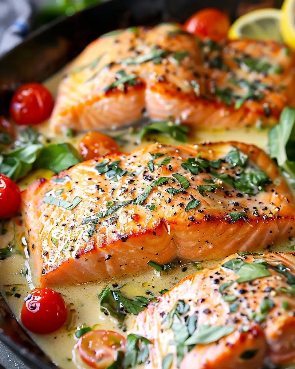 Creamy Tuscan Salmon with a Twist of Garlic Lemon