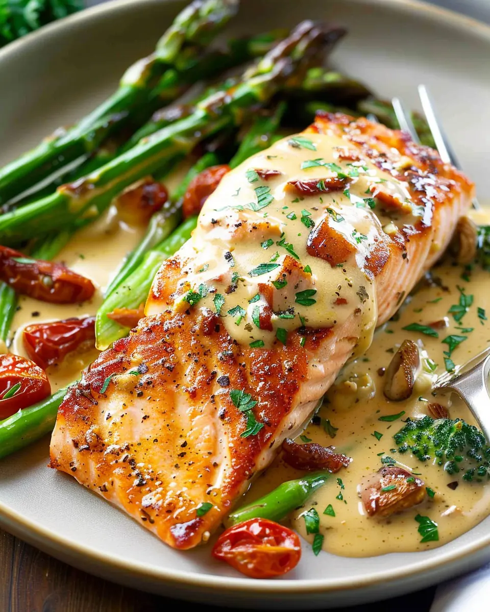PrintCreamy Tuscan Salmon with Turkey Bacon: A Delightful Dinner Treat