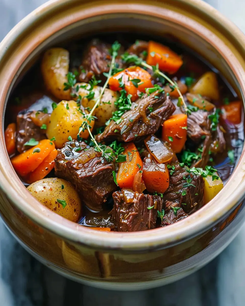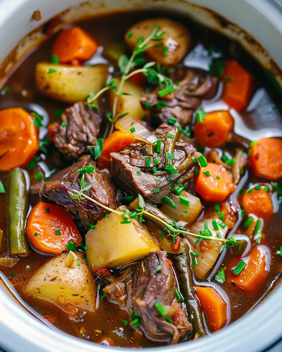 For a fresh perspective, an Asian-inspired version of your Crock Pot Beef Stew could be just what you need. Swap out traditional beef broth for dashi or a homemade stock infused with ginger and garlic. Add soy sauce, sesame oil, and even a handful of sliced mushrooms or bok choy for an umami-packed dish. A sprinkle of green onions and fresh cilantro at the end will elevate the dish and provide a beautiful contrast to the rich beef.