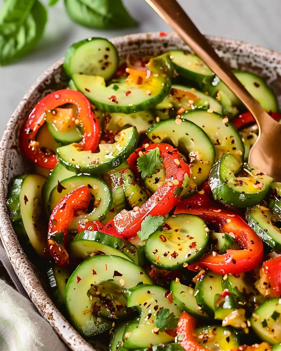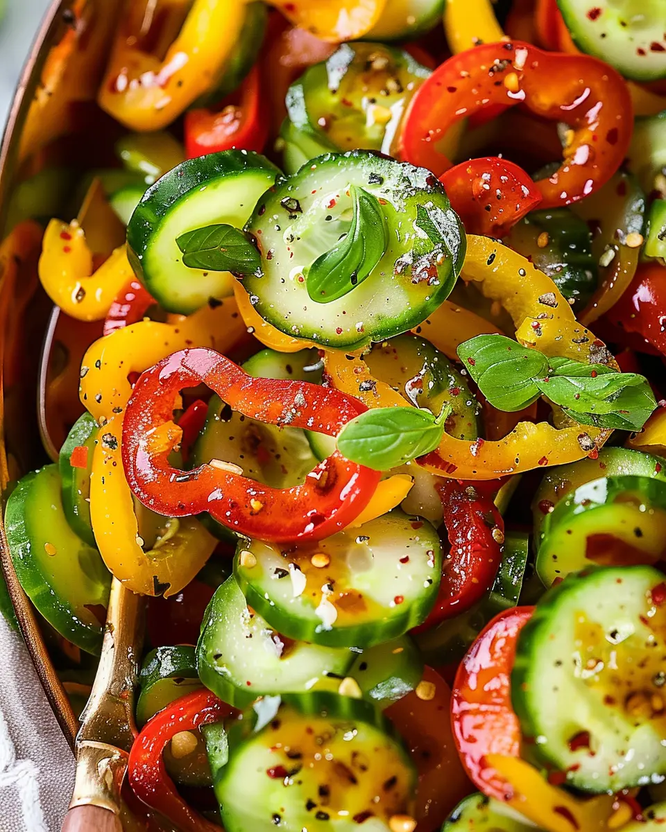 PrintCucumber and Bell Pepper Salad Recipe: Easy Refreshing Delight