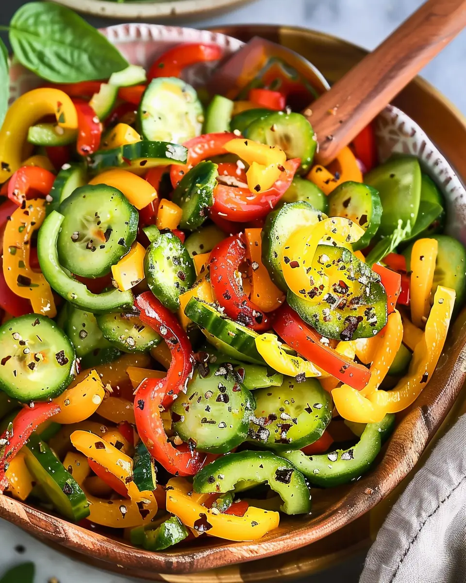 A refreshing salad that combines crunchy cucumbers and bell peppers for a light and healthy dish.