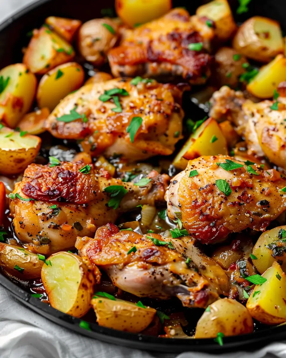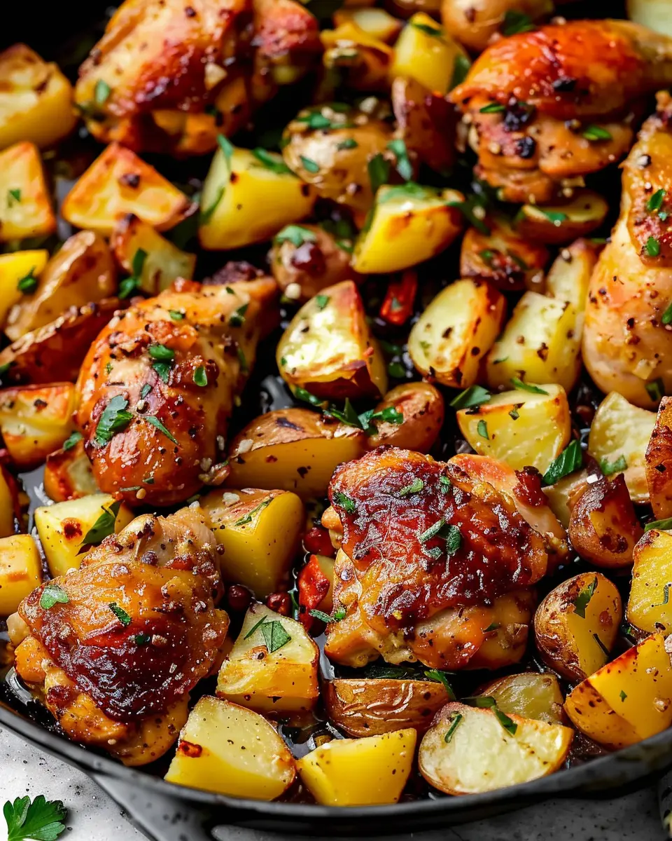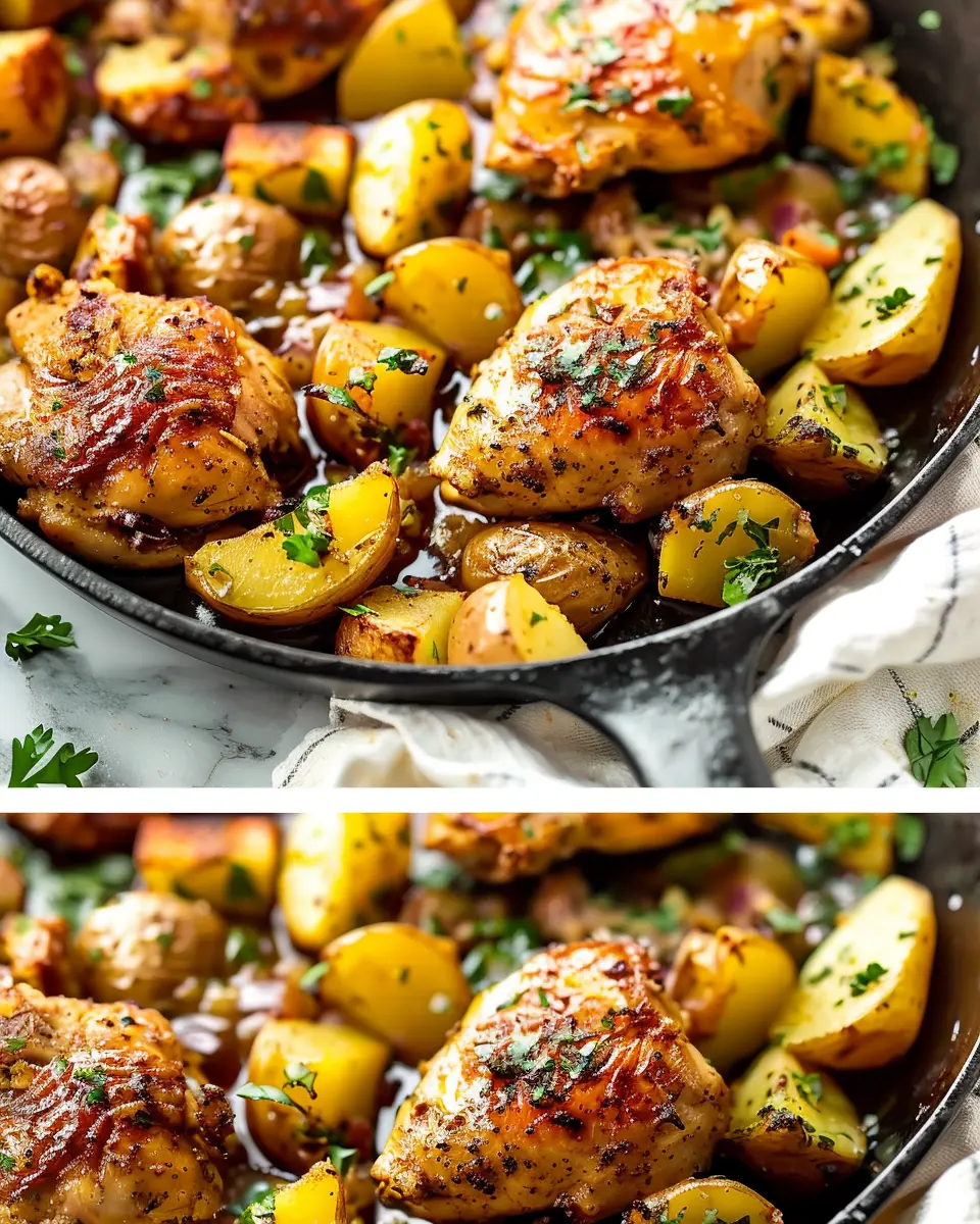 Experience the creamy deliciousness of Garlic Butter Chicken and Potatoes, the ultimate comfort dish that combines juicy chicken with tender potatoes, all smothered in a rich garlic butter sauce.