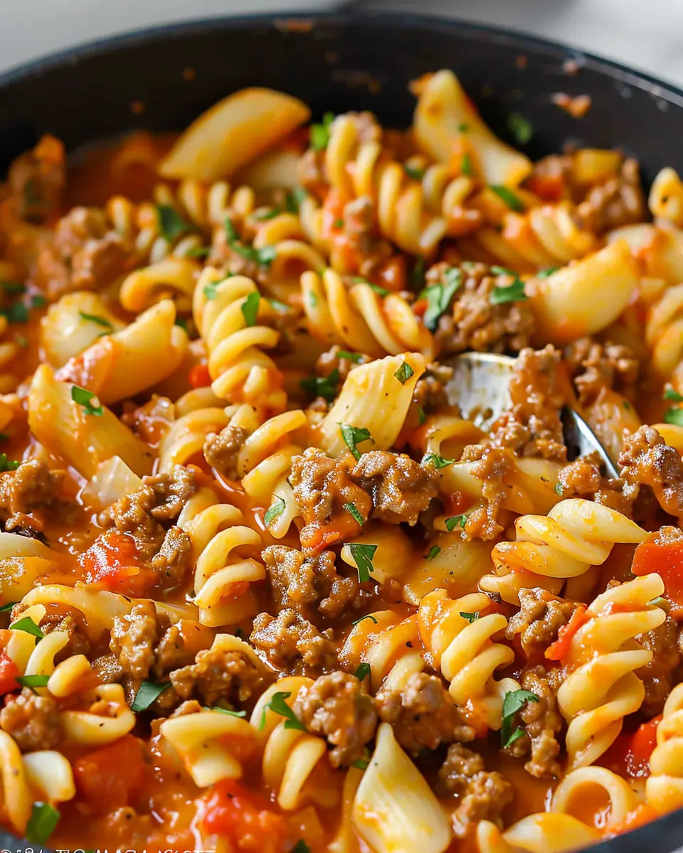 A delicious and quick ground beef pasta skillet recipe perfect for busy weeknights.