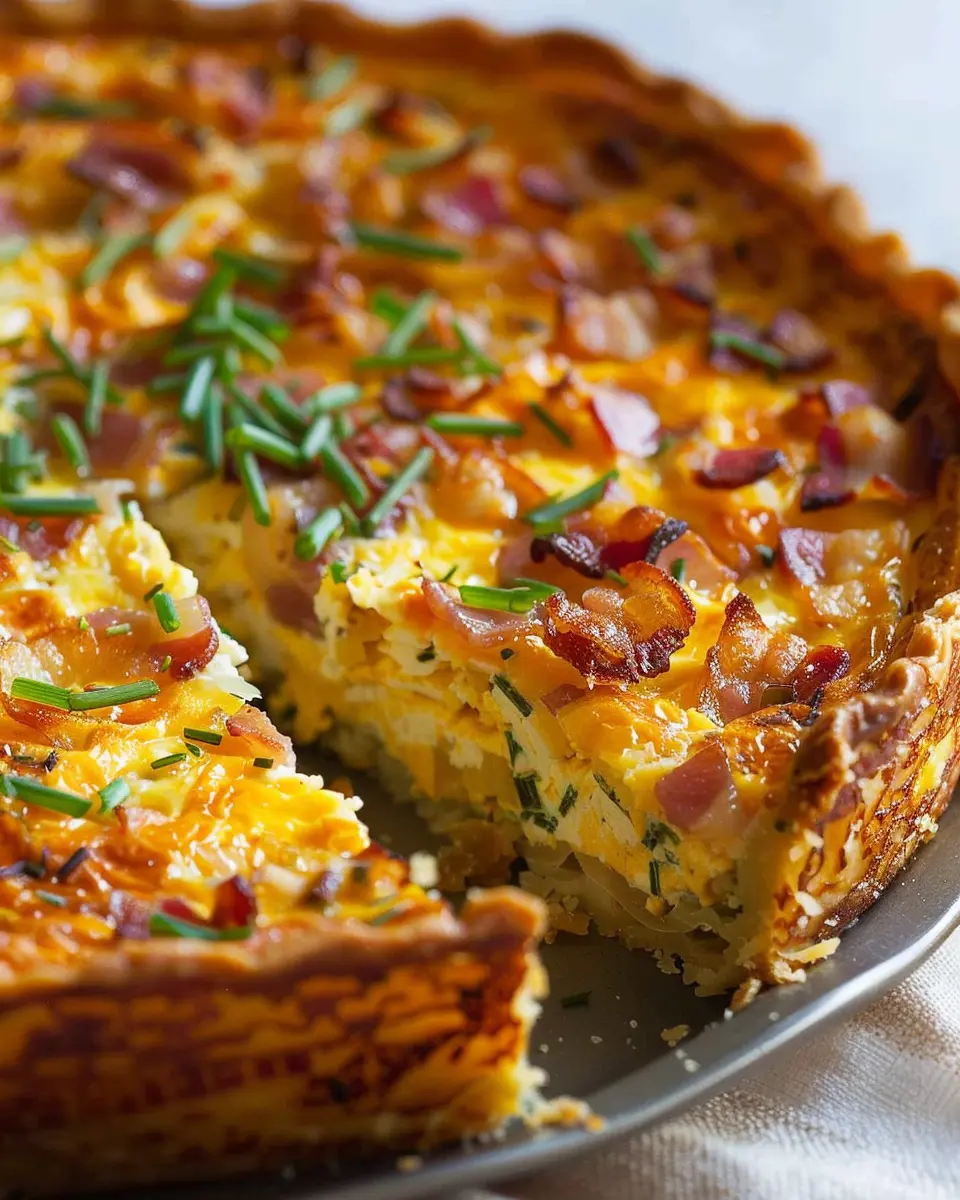 PrintHash Brown Crust Turkey Bacon and Cheddar Quiche Delight