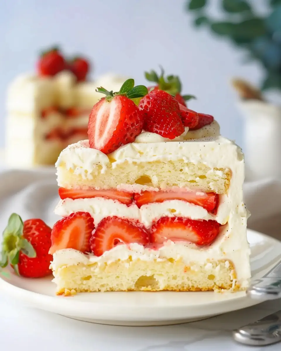• Visual Appeal: The contrast of white whipped cream and bright red strawberries makes for an eye-catching presentation. It’s a cake that begs to be photographed!