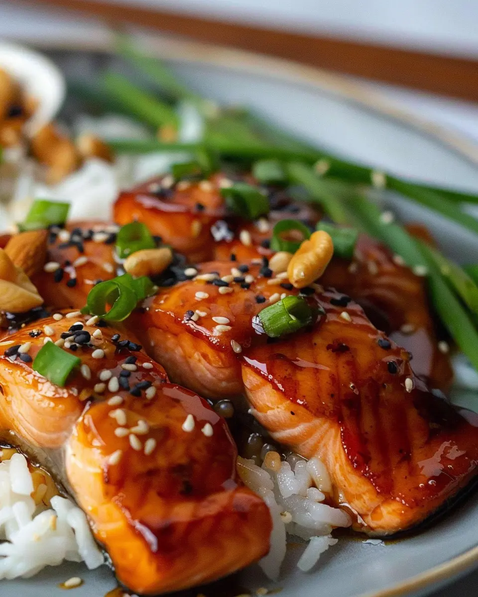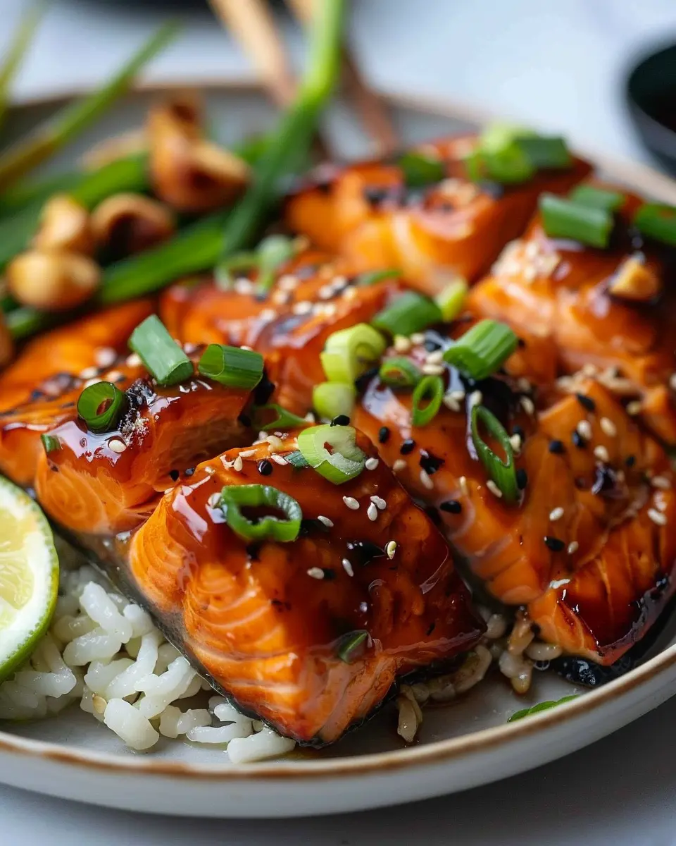The caramelized glaze of the teriyaki sauce brings a unique flavor profile that balances sweetness and umami, making each bite richly satisfying. Imagine the crispy, shiny glaze clinging to the salmon, with the steam rising as it comes out of the oven.