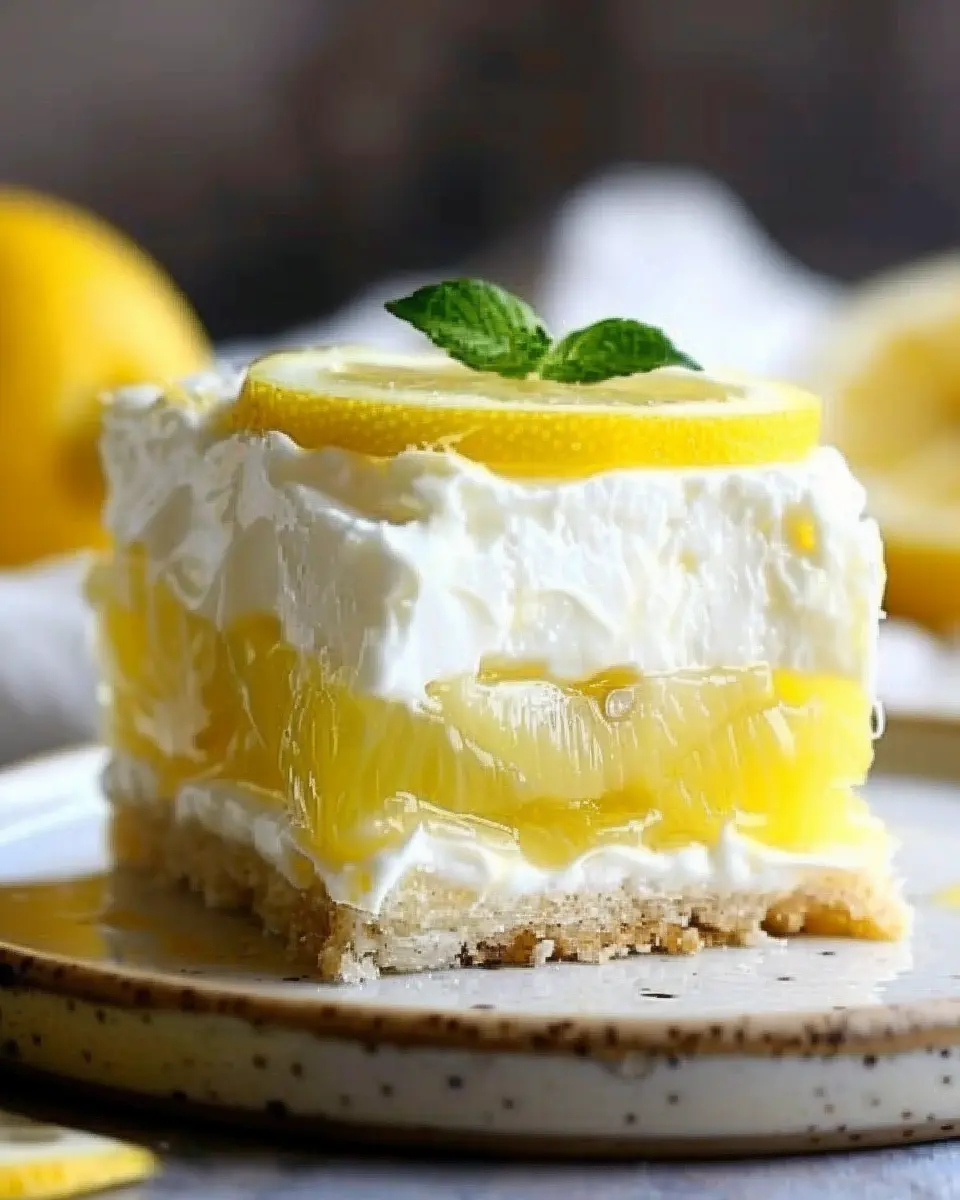Slice and Serve: When ready to serve, cut your lemon lush into squares or slices. Garnish with fresh mint or additional lemon zest for an extra touch.