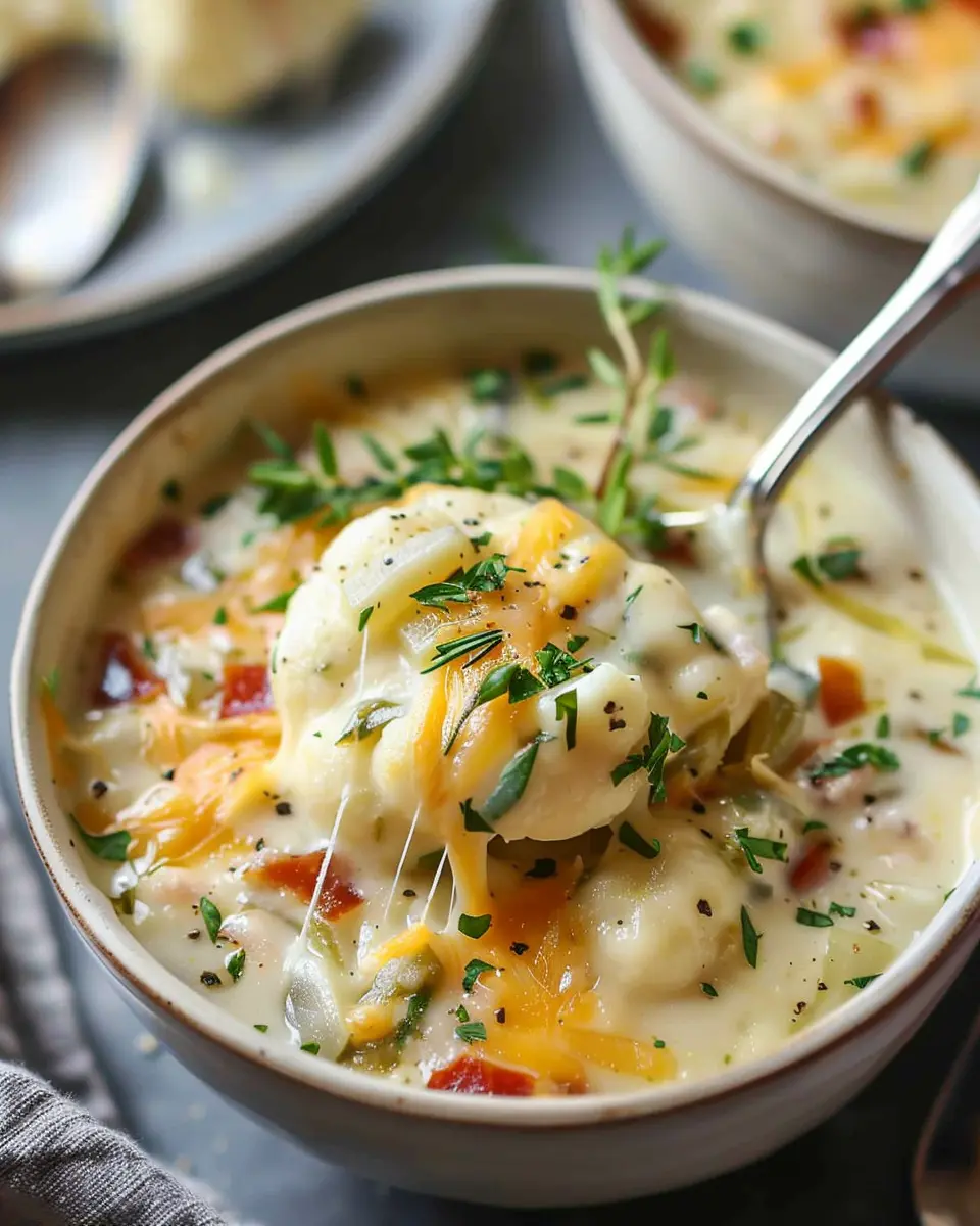 And there you have it—your delicious loaded cheesy cauliflower soup is ready to enjoy! This dish is not just fulfilling; it’s also packed with nutrients, making it a great go-to for busy professionals.