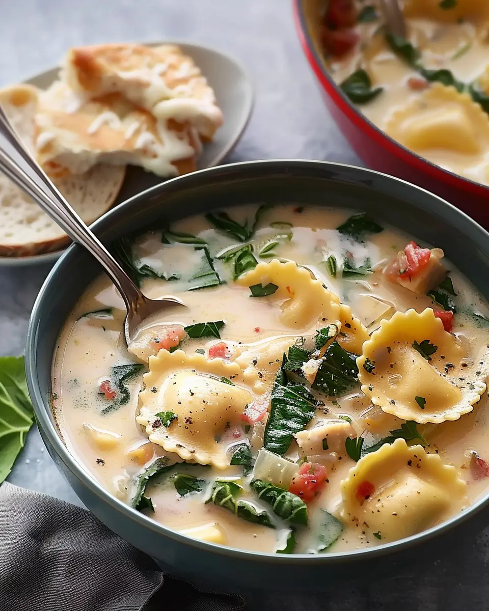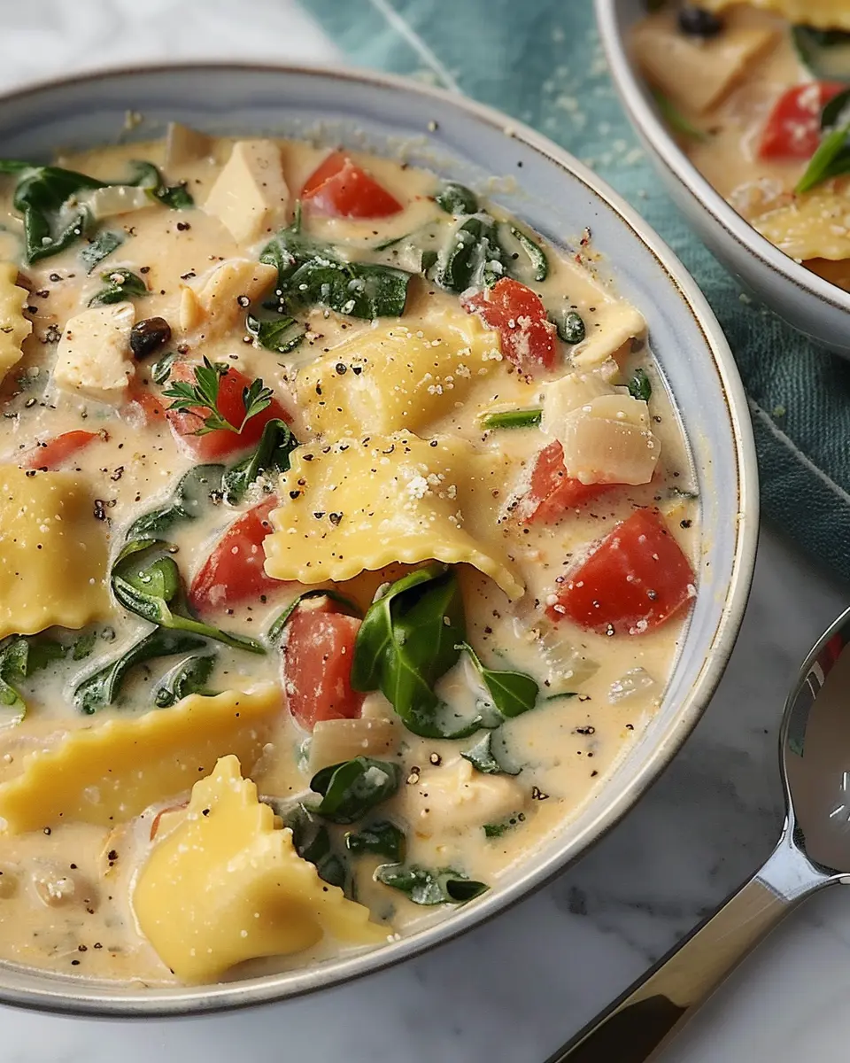 A delicious one-pot creamy soup filled with ravioli and Tuscan flavors, perfect for chilly nights.