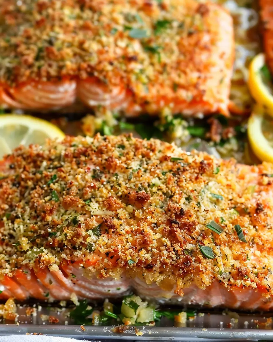Enjoy the satisfying crunch of the crust as you dive into the flaky, flavorful salmon. This dish not only impresses your dinner guests but is also perfect for a quick weeknight meal.