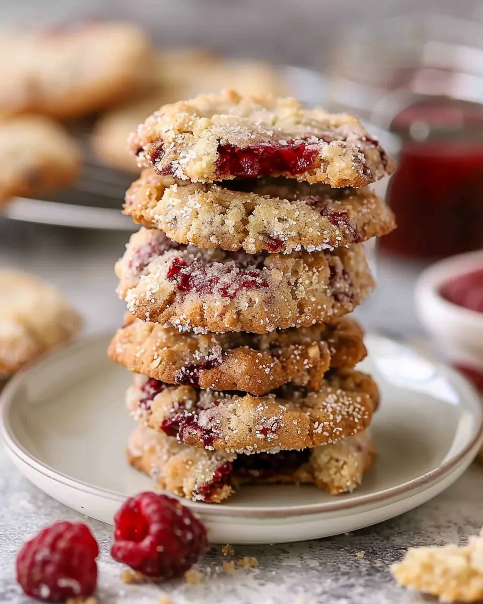 Pair these cookies with a steaming cup of herbal tea or a rich cup of coffee. The tartness of the raspberries balances beautifully with the warmth of your drink. For a refreshing twist, consider pairing them with a cool glass of lemonade or iced tea.