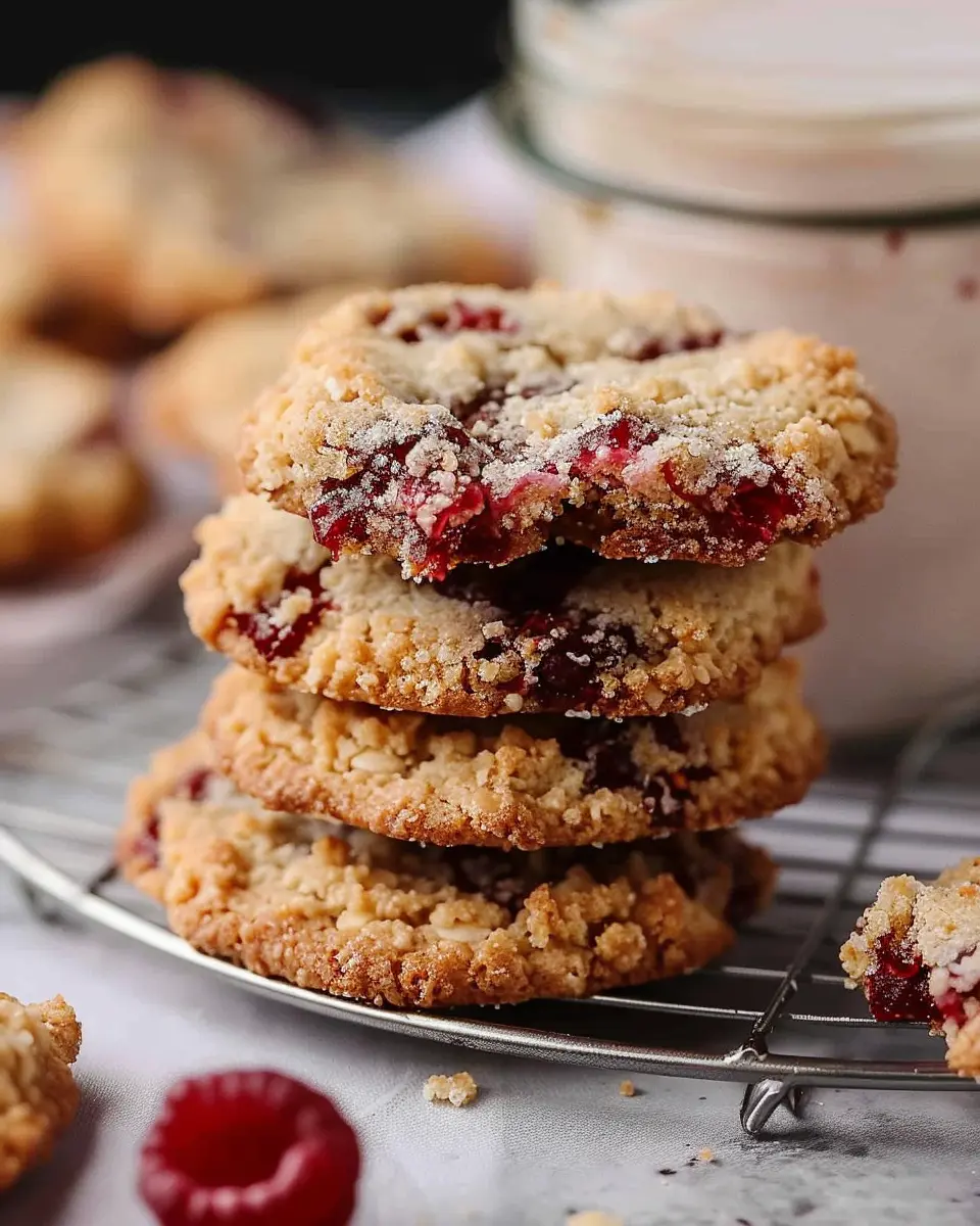 Delight in the sweet and tart combination of raspberry crumble cookies, perfect for any occasion.