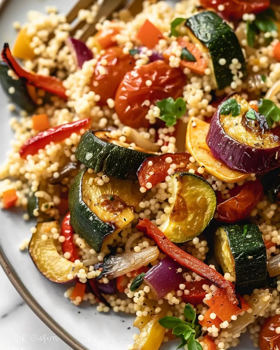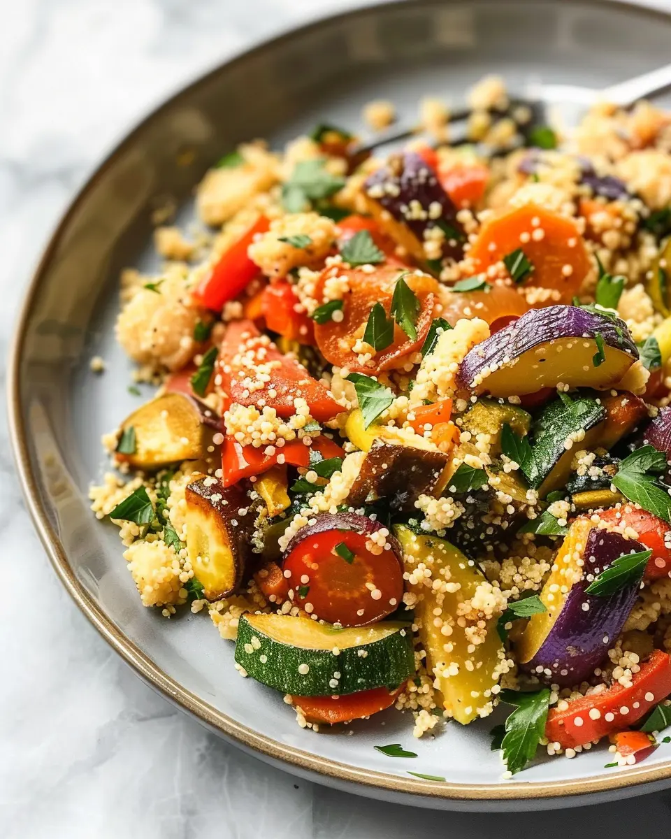 Enjoy a flavorful and nutritious Roasted Vegetable Couscous that’s perfect for any meal. This easy recipe is packed with vibrant vegetables and spices.