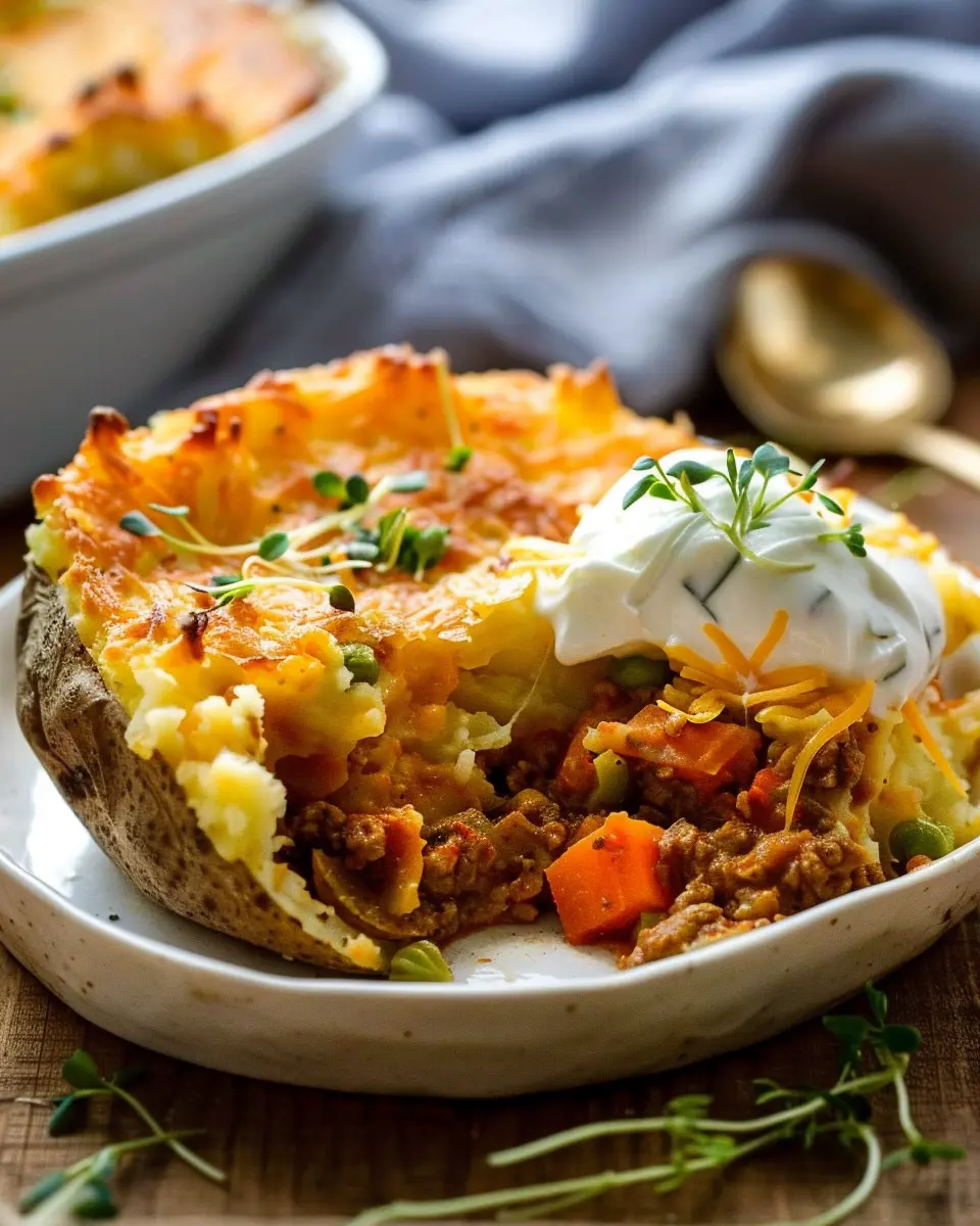 PrintShepherd’s Pie Baked Potatoes: A Comforting and Easy Twist