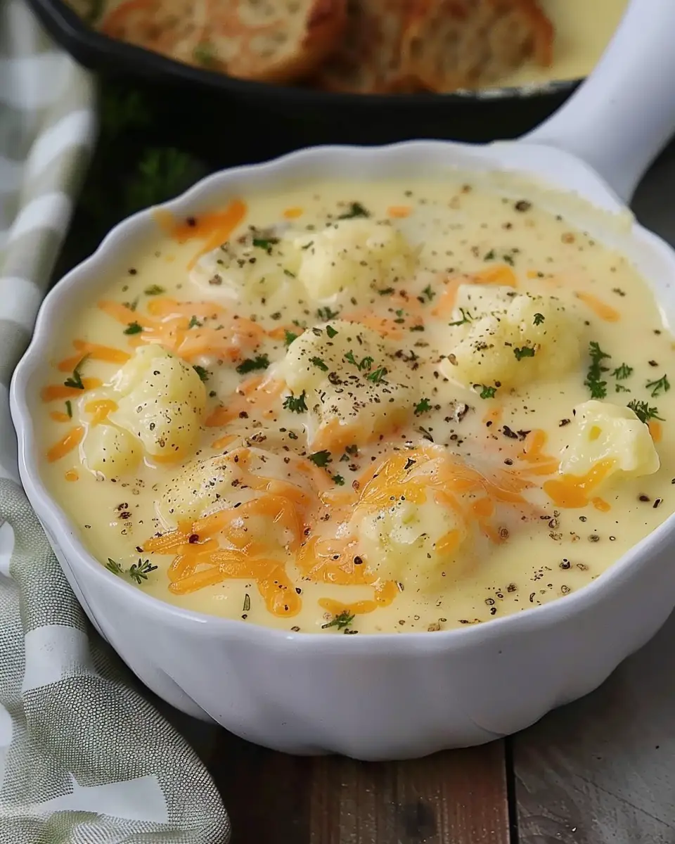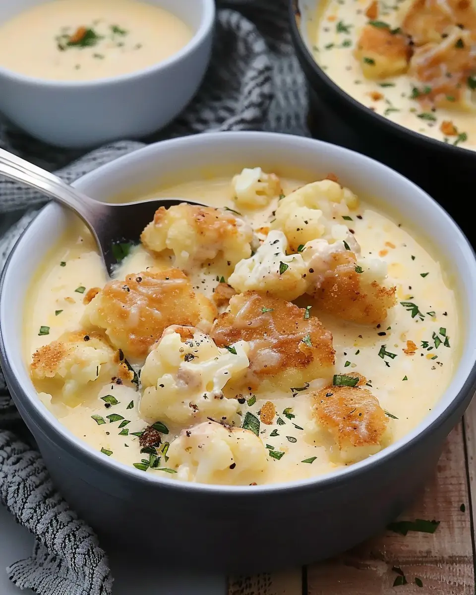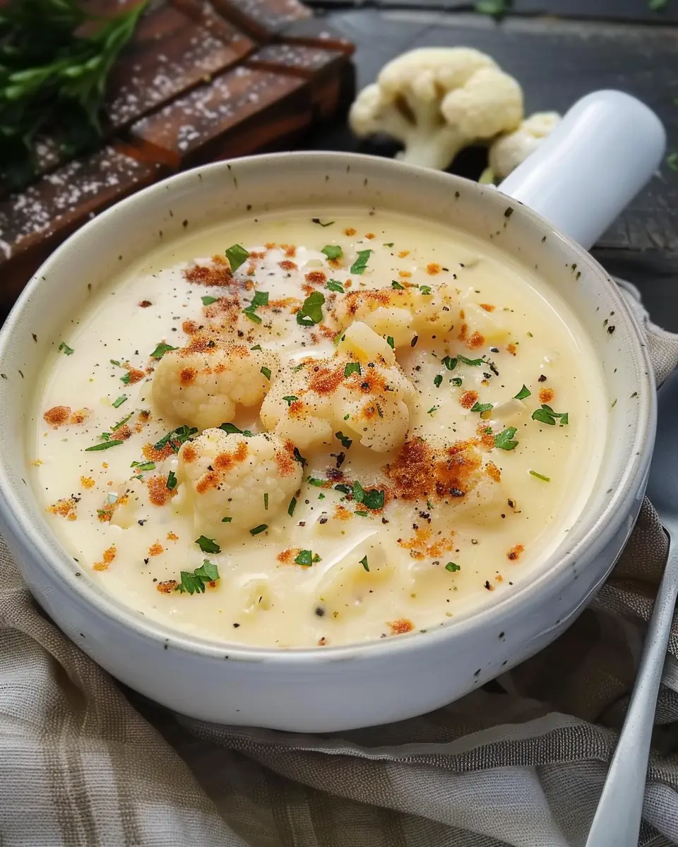 This Simple Cheesy Cauliflower Soup is a comforting dish that’s rich in flavor and easy to make!
