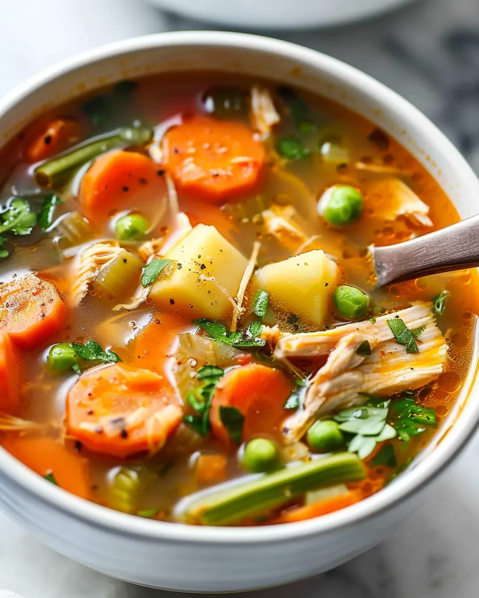 Enjoy a warm, hearty bowl of Simple Chicken Vegetable Soup that is both nutritious and easy to make.