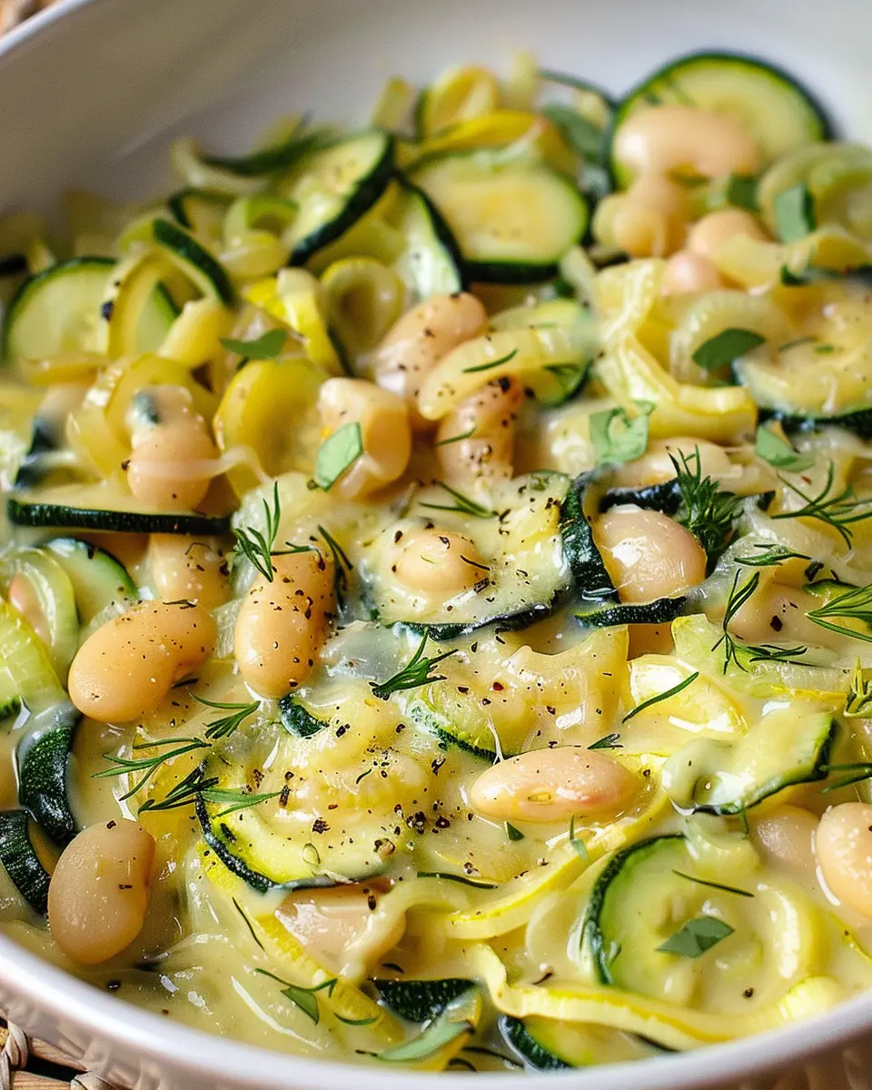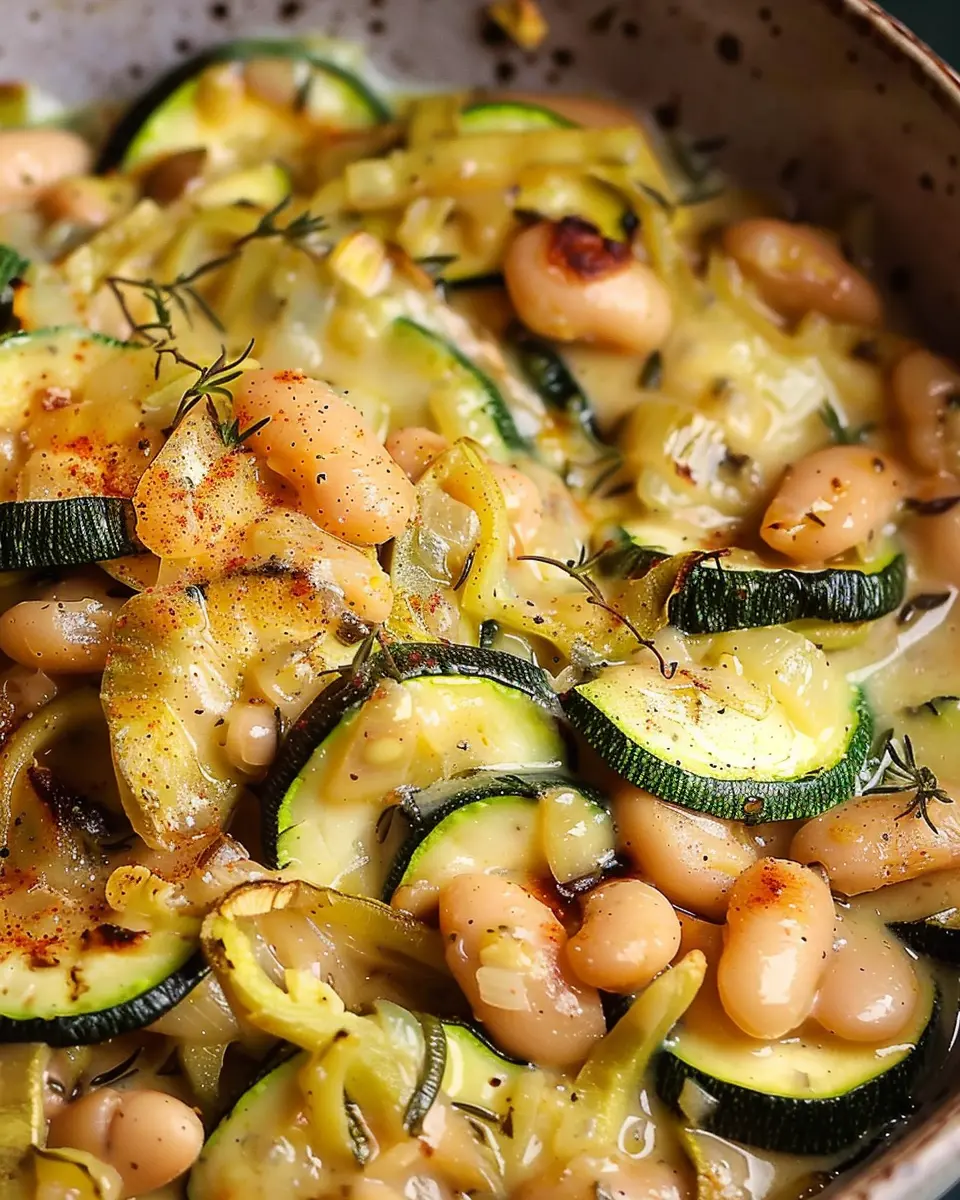 A delightful dish featuring tender courgettes and creamy butterbeans, perfect for a comforting meal.