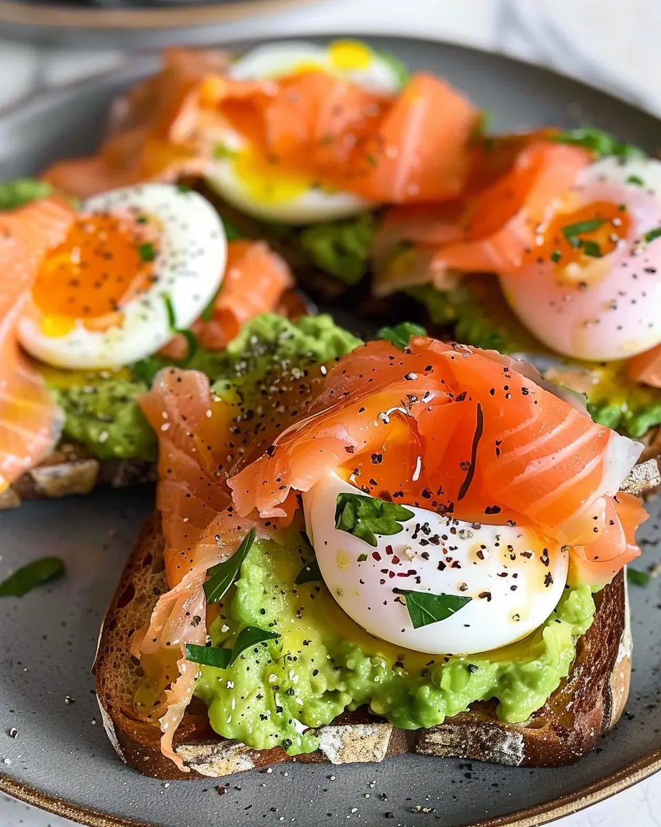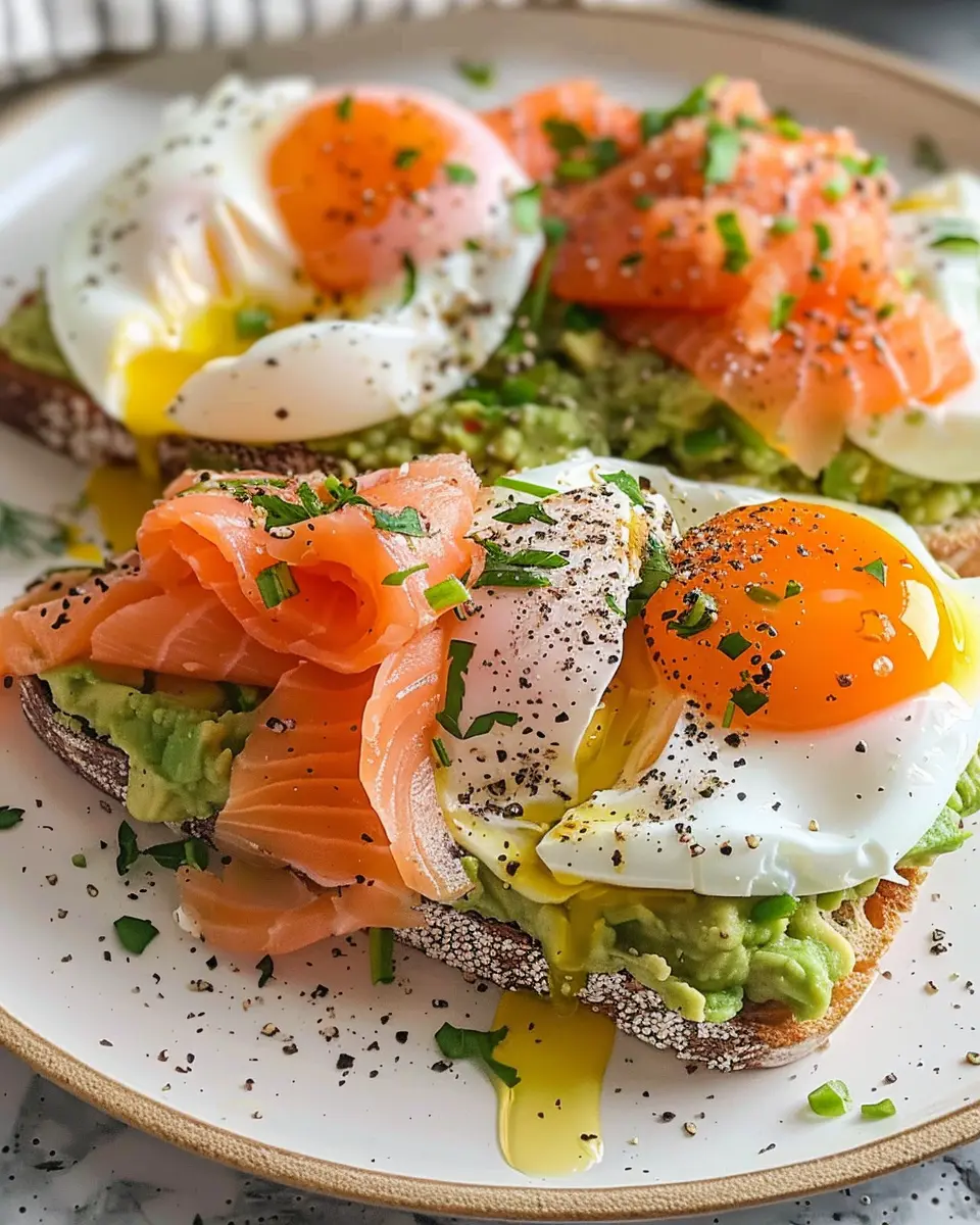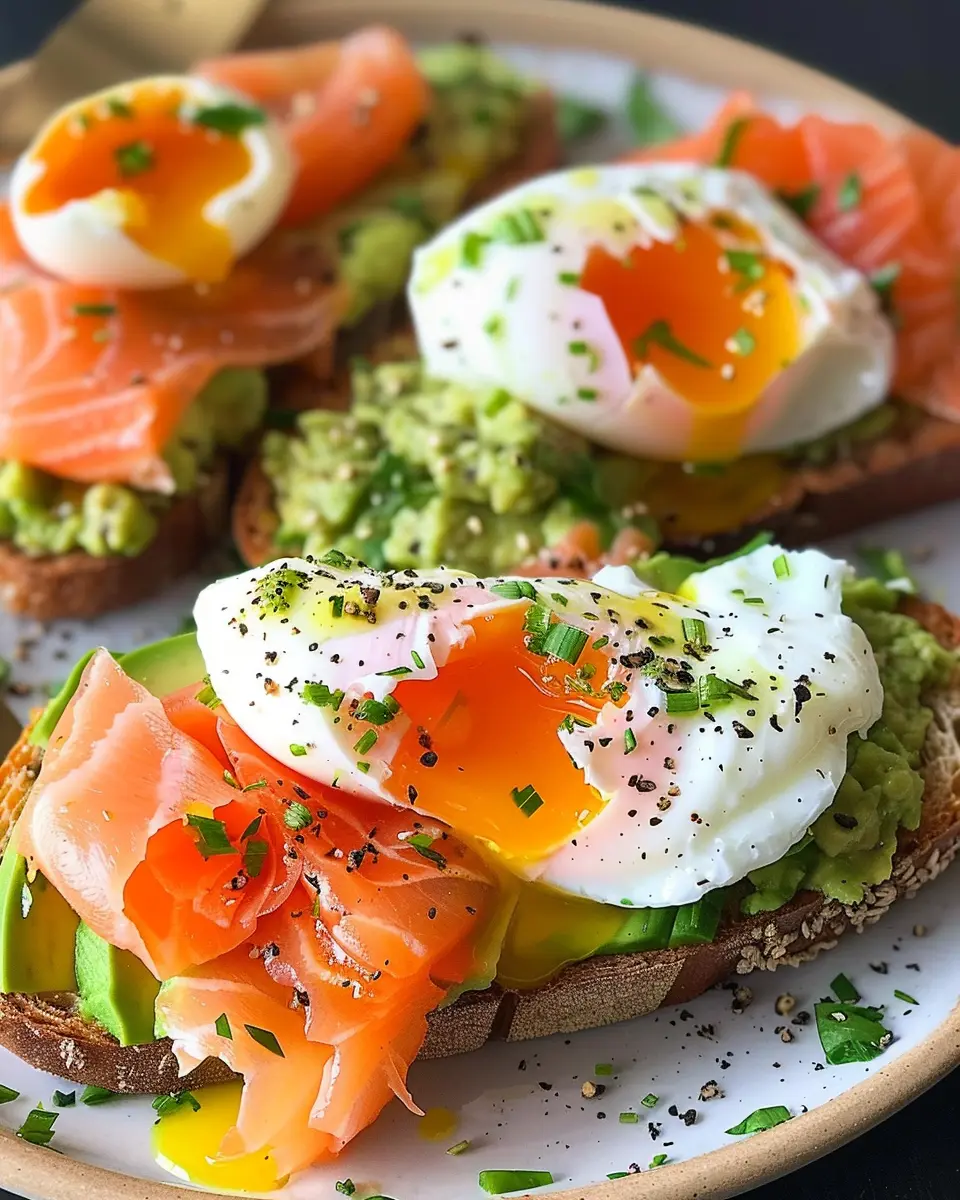 - Layer It Up: Stack the smoked salmon and poached eggs artfully on top of the avocado toast.