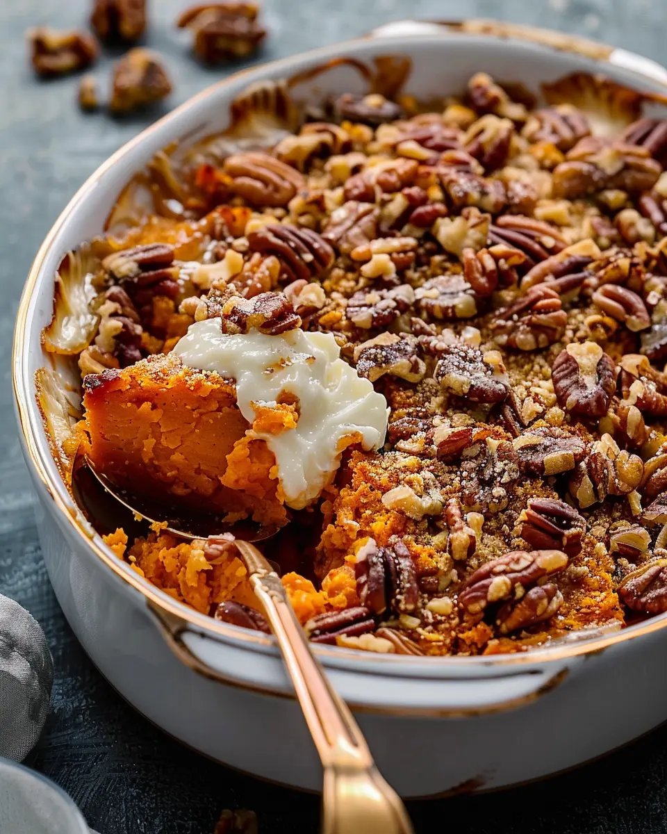 The texture of this casserole is simply divine, combining the smoothness of whipped sweet potatoes with crunchy toppings like chopped nuts or a streusel mix. It’s comfort on a plate. Plus, the warm aroma of maple syrup and sweet potatoes baking together fills your home with such inviting warmth.