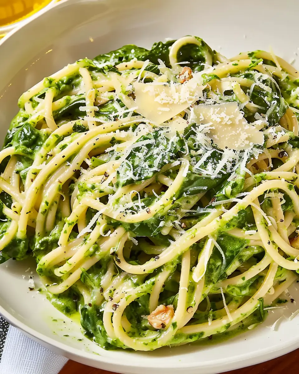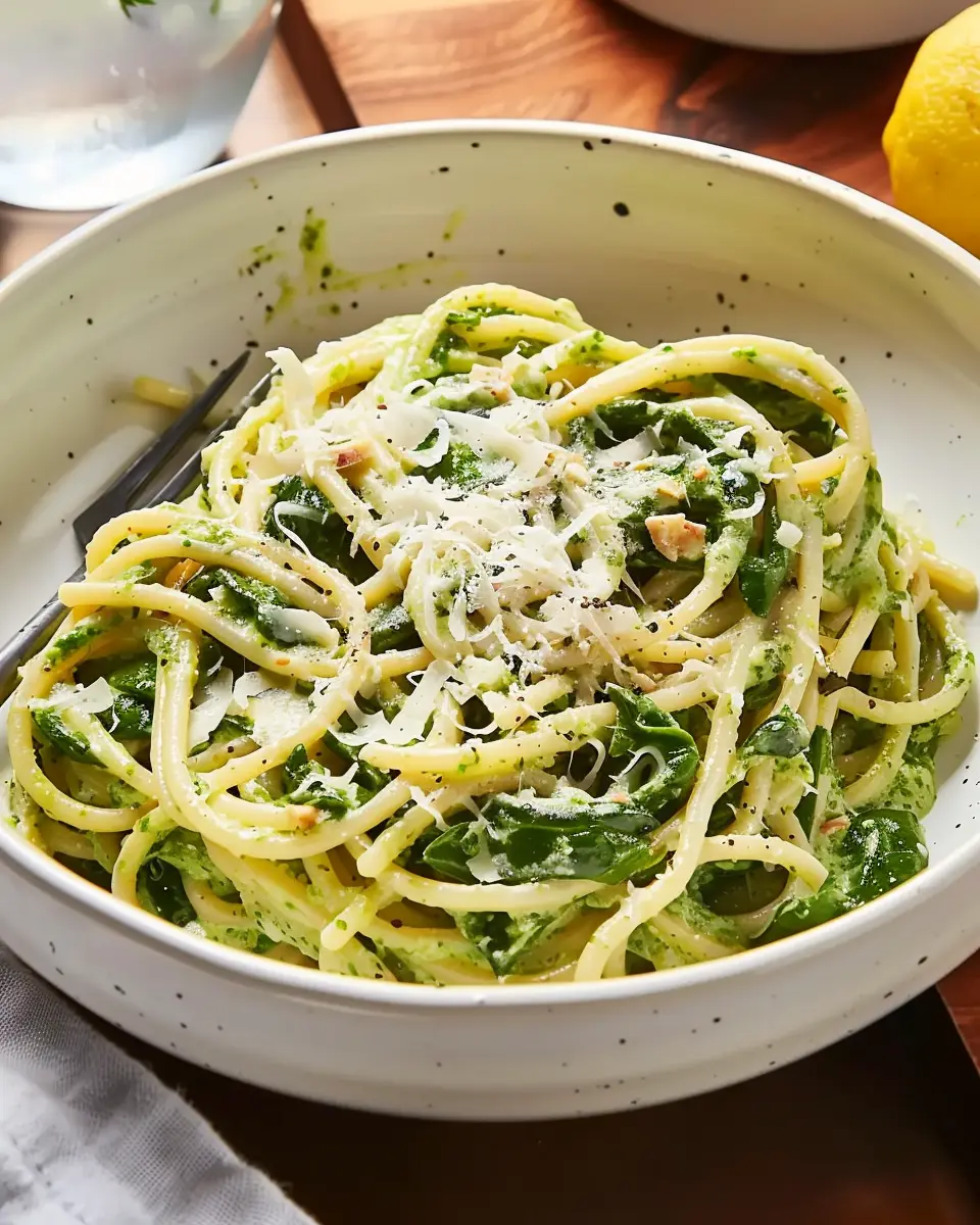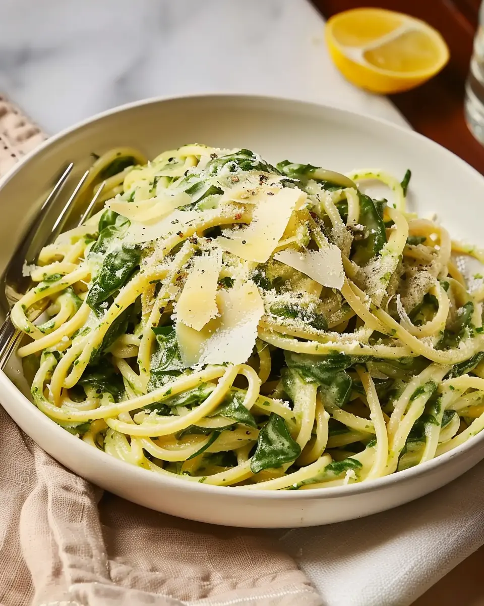 PrintSpaghetti with Creamy Lemon-Spinach Sauce: A Quick and Indulgent Delight