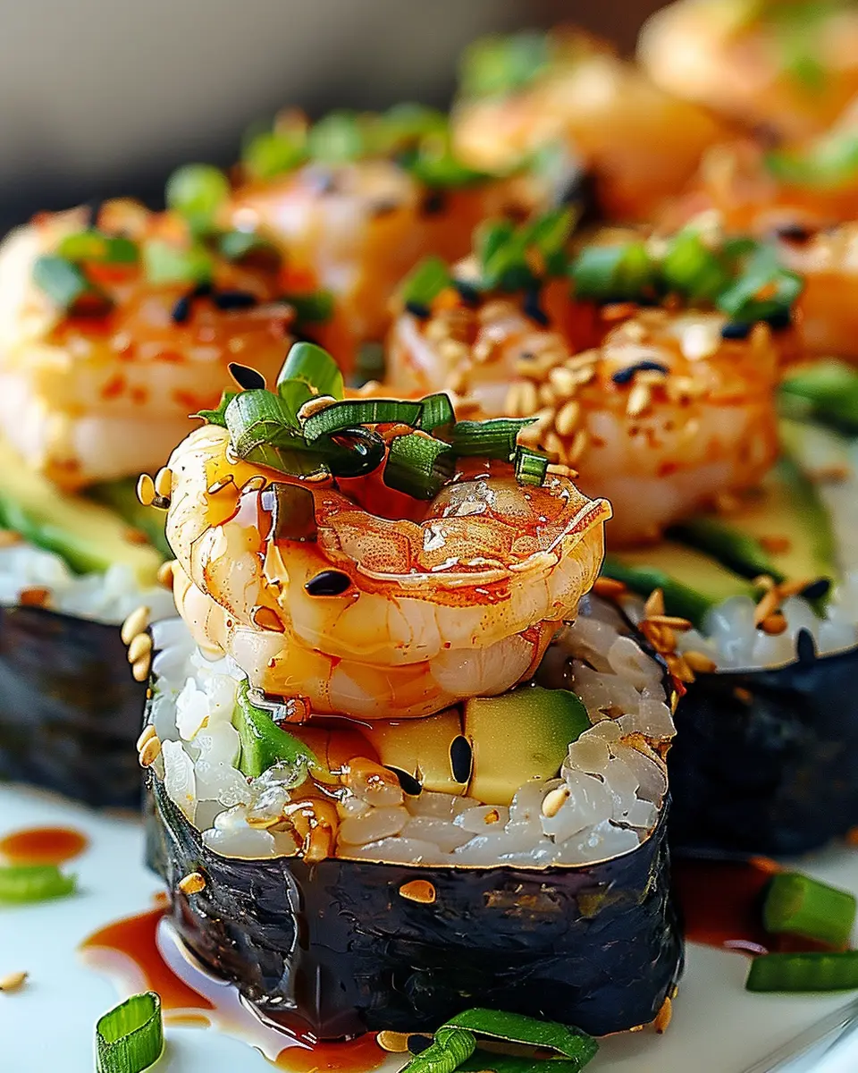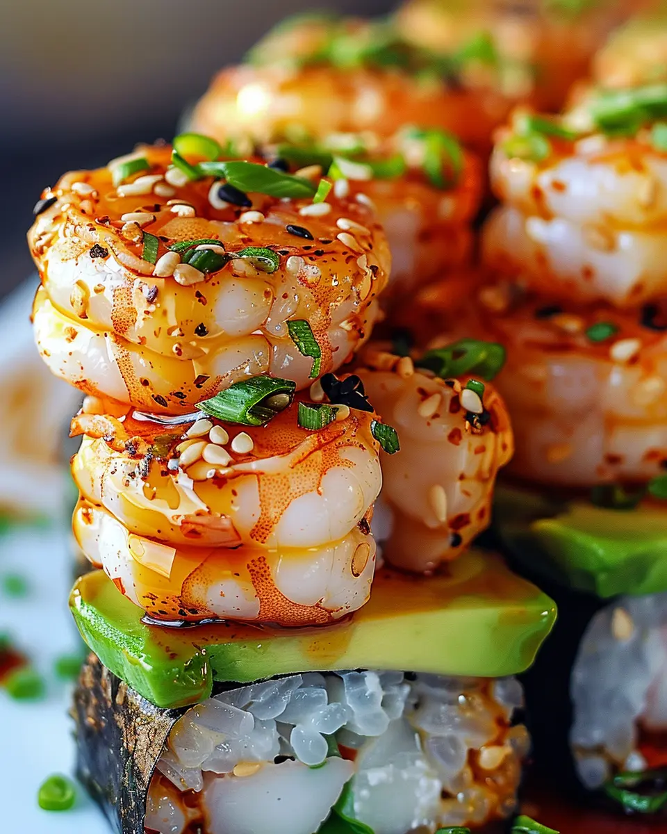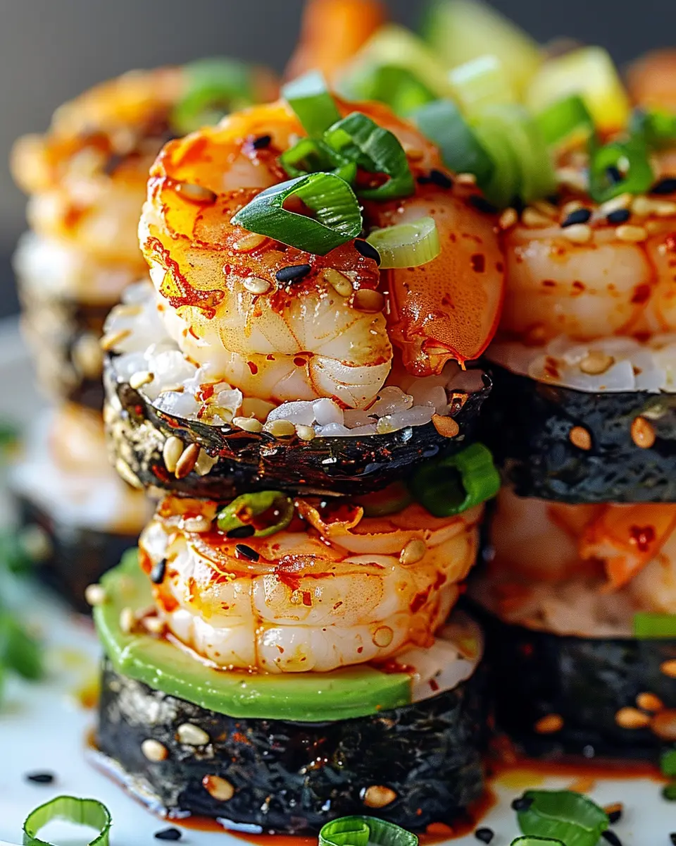 Finally, let’s add that professional touch. Drizzle extra spicy mayo over the top, and consider finishing with a sprinkle of nori flakes or cilantro for a pop of color and flavor. You can also serve your spicy shrimp sushi stacks with pickled ginger and soy sauce on the side for dipping. If you’re looking for a refreshing drink, a simple cucumber-mint cooler makes a fantastic accompaniment.