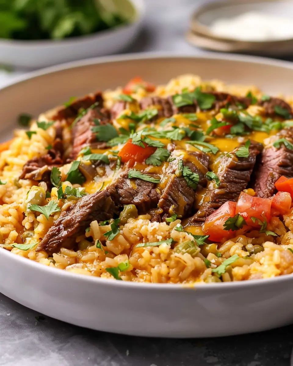 Enjoy a deliciously comforting meal with this Steak Queso Rice Recipe, combining juicy steak, creamy queso, and fluffy rice.