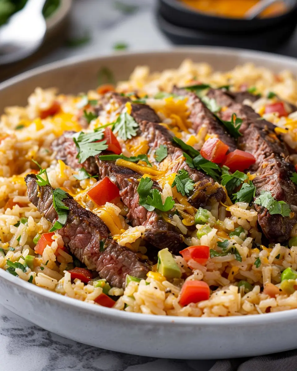 PrintSteak Queso Rice Recipe: A Juicy Twist for Comforting Meals