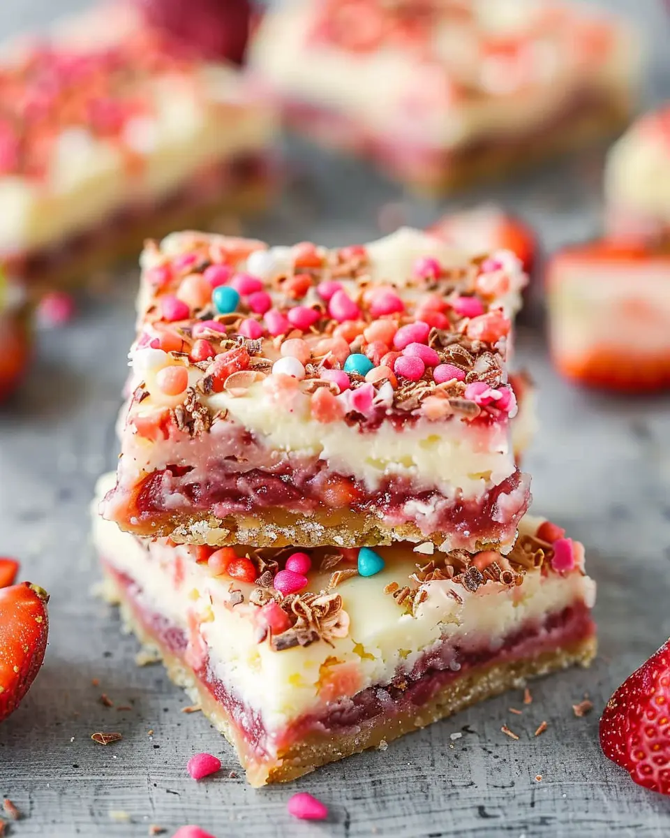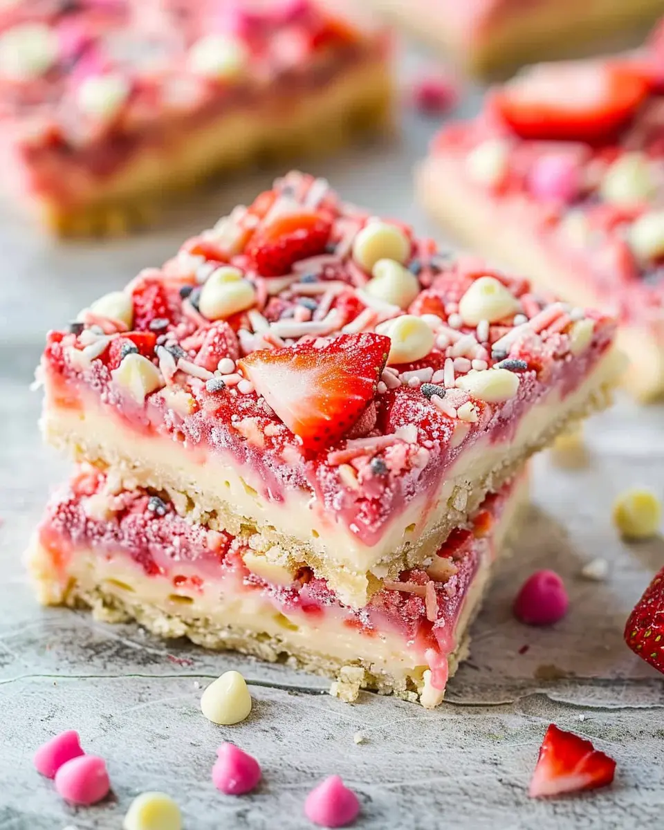These Strawberry White Chocolate Gooey Bars are a deliciously indulgent treat that combines the sweetness of strawberries with creamy white chocolate, perfect for any dessert lover.