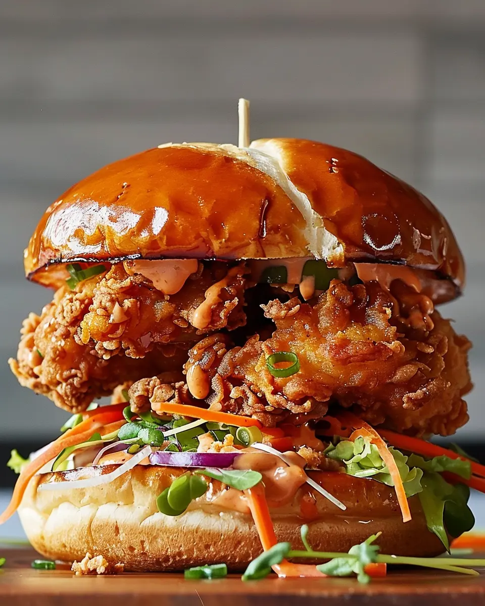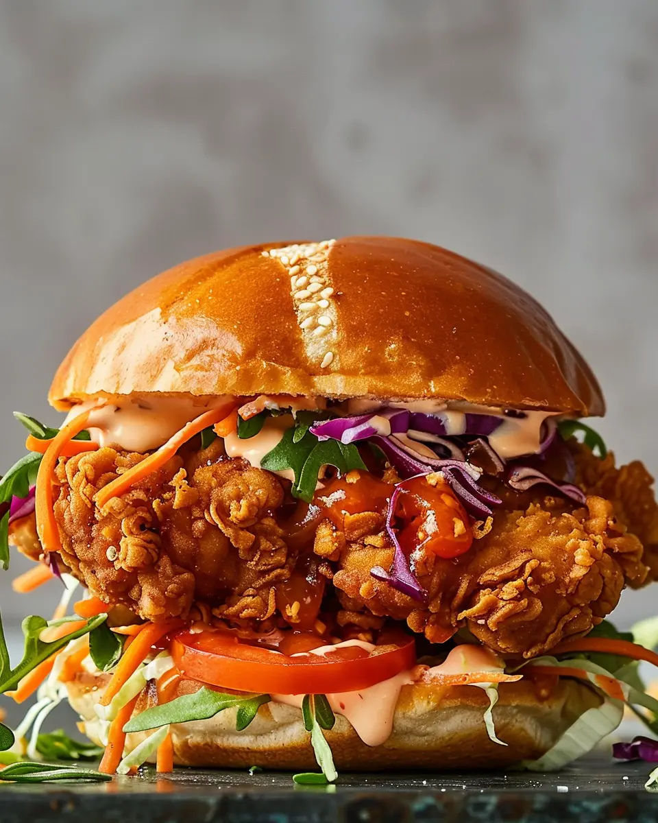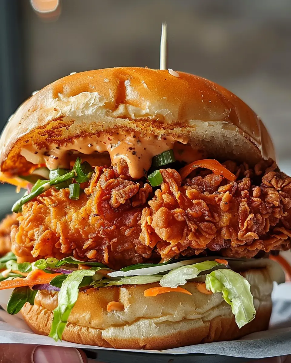 - Layering: Start with a toasted brioche bun, add your crispy chicken, and finish with vibrant toppings like pickled vegetables and fresh herbs.