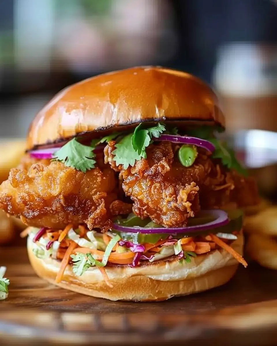 Experience the ultimate flavor explosion with this Thai Fried Chicken Sandwich, perfect for food lovers who crave something unique.