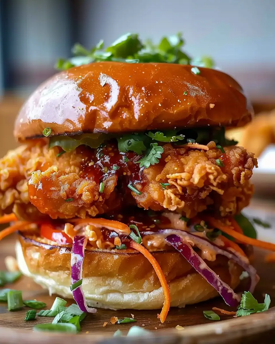 If you’re craving a bit of heat, the Spicy Korean Fried Chicken Sandwich is a fantastic twist. Start by marinating your chicken in gochujang—a savory and spicy Korean chili paste—for a few hours. This packs in flavor and heat. After marinating, follow your original frying method until the chicken is golden and crispy.