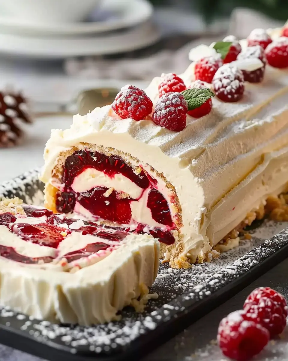 Delight in this Vanilla Raspberry Yule Log, a perfect holiday dessert that combines flavors and creativity.