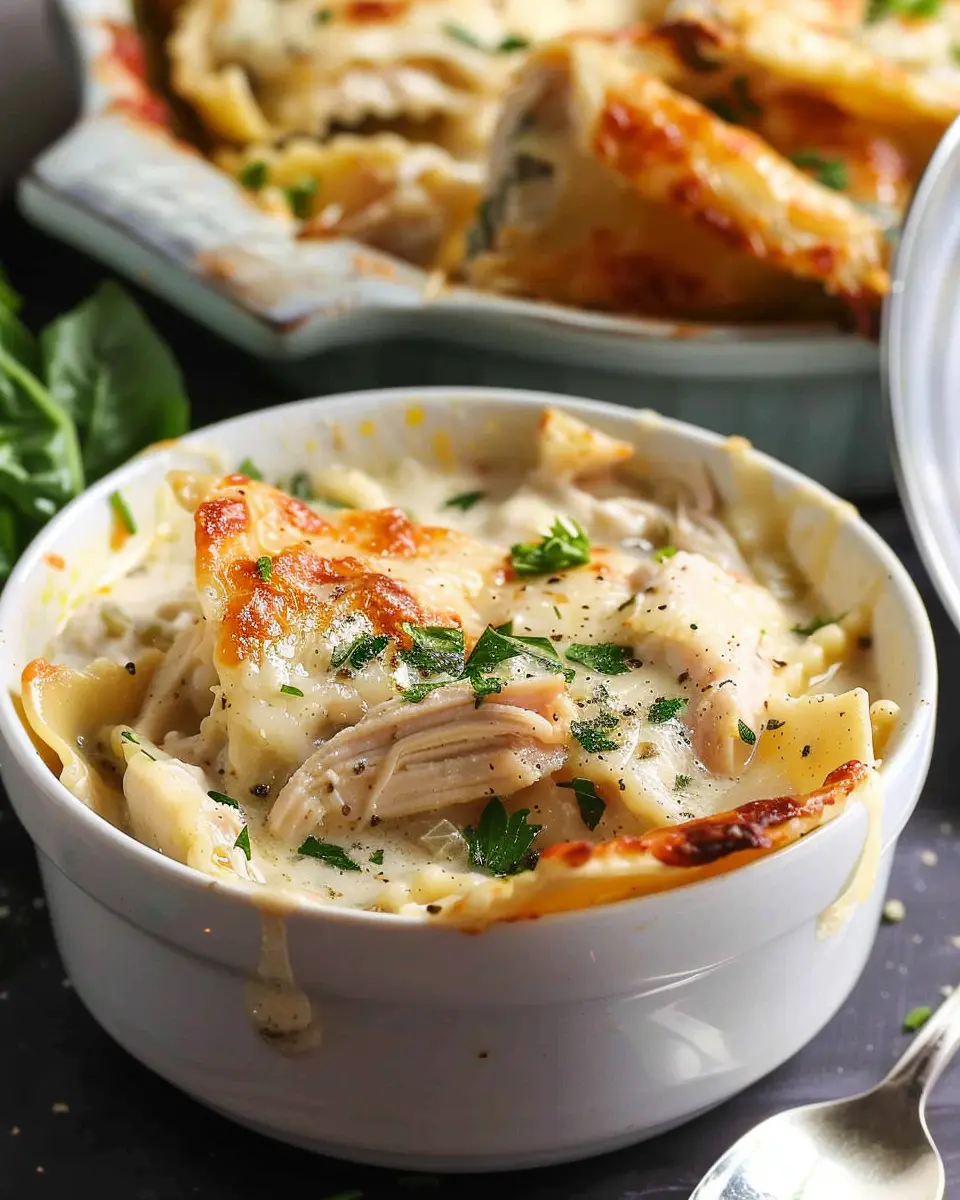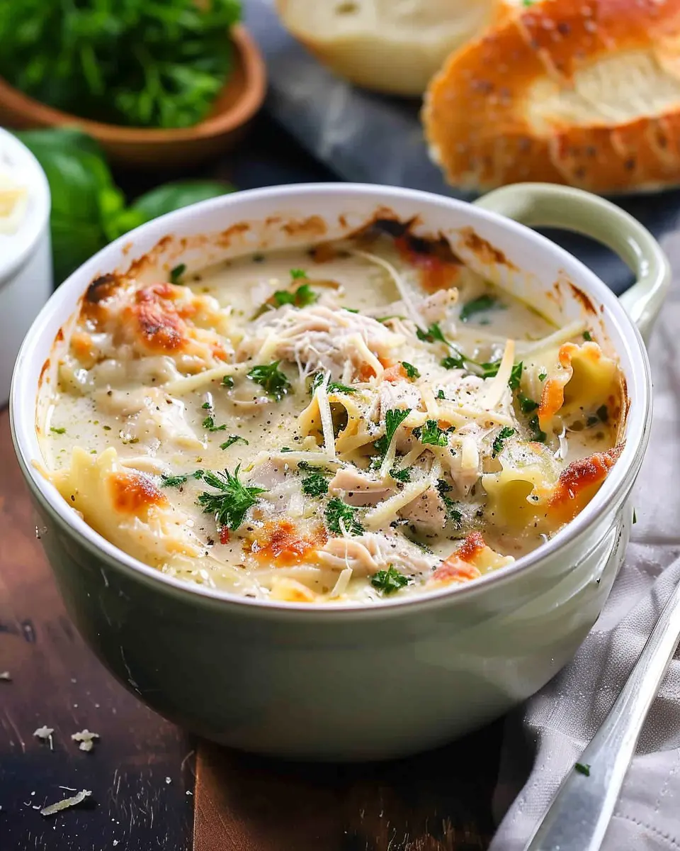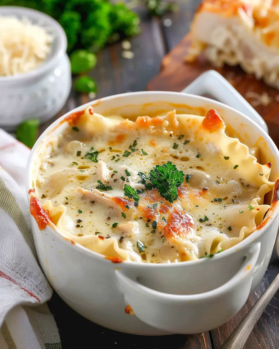 A warm and comforting soup that combines the beloved flavors of lasagna with tender chicken and rich broth, perfect for cozy nights.